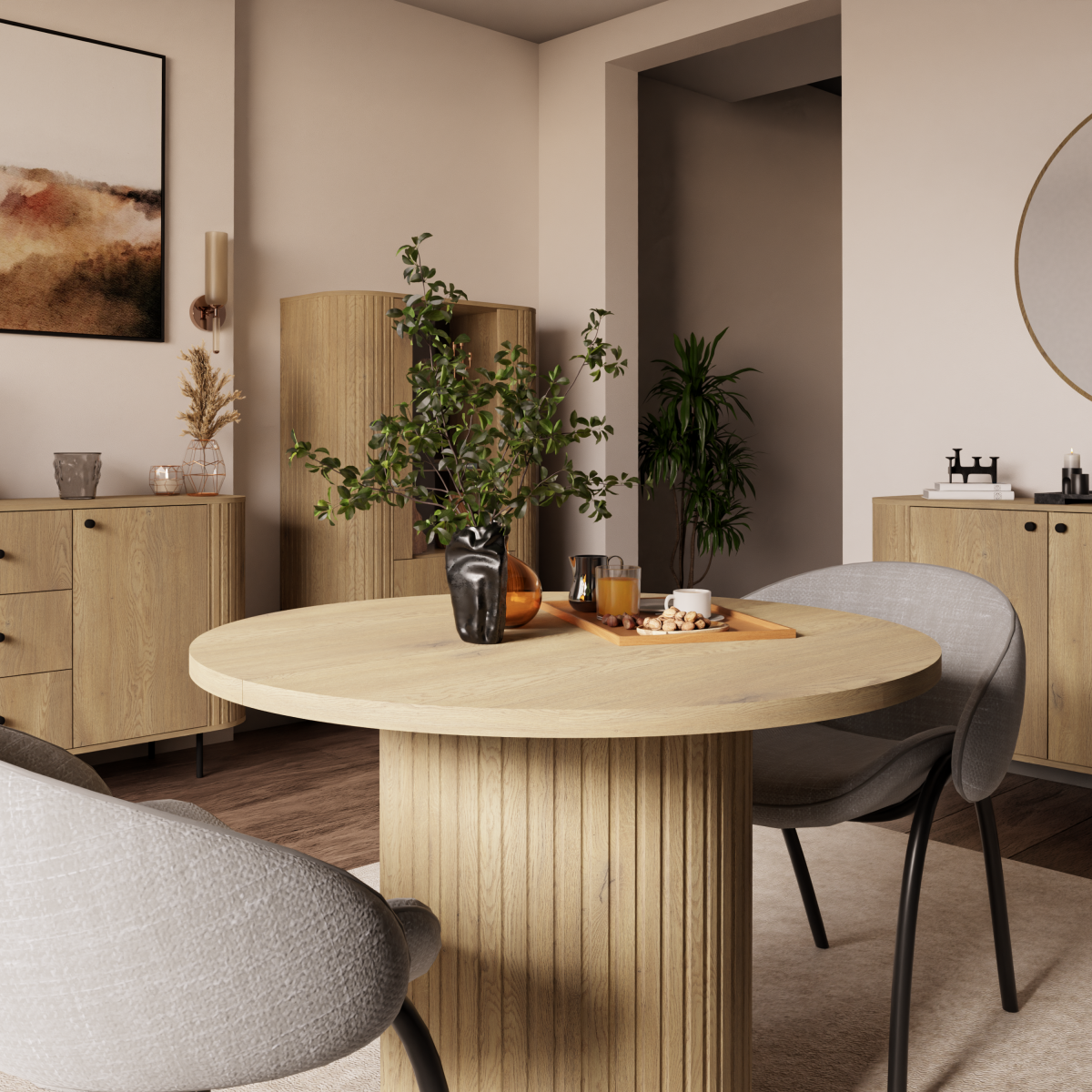 Objevte kolekci nábytku Orvelo, která představuje minimalismus ozvláštněný precizními frézovanými detaily a vnáší do interiéru zcela nový rozměr elegance. Barevné provedení v jemných zemitých odstínech tvoří harmonický základ, černé a zlaté akcenty dodají lehkost a moderní charakter. Kolekce byla navržena tak, aby každý prvek – od vitrín a komod až po konferenční stolky a TV skříňky – mohl být použit samostatně a zároveň ladil jako celek.