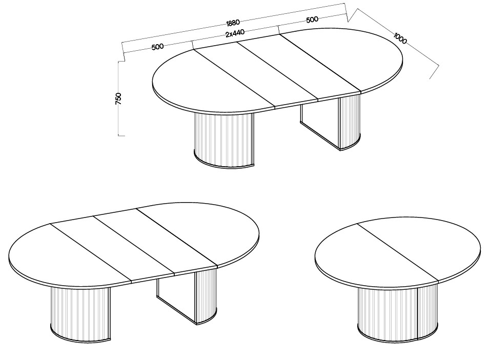 ø 100 cm, jídelní, rozklad až na šířku 188 cm