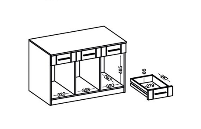 šířka 103 cm, 3 dvířka, 3 zásuvky, 3 police, více barevných variant