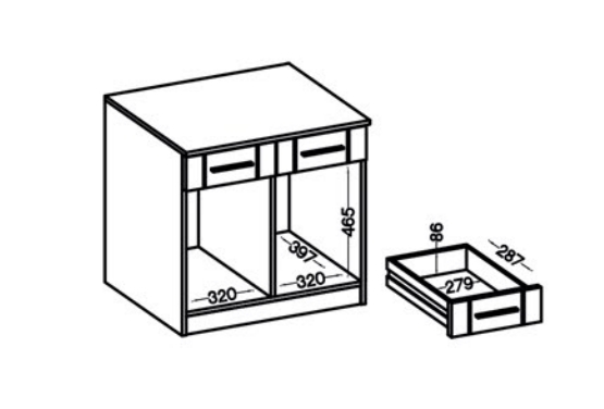 šířka 69 cm, 2 dvířka, 2 zásuvky, 2 police, více barevných variant