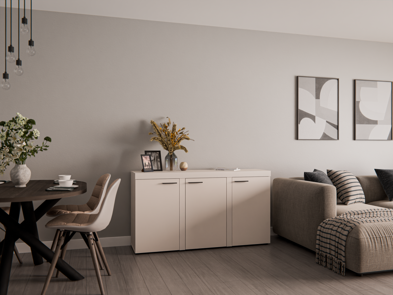 Komoda Rizo je nejen skvělým doplňkem k bytové stěně Rizo. Stejně výborně poslouží jako samostatný kus nábytku. Komoda má univerzální využití a nabízí dostatek úložného prostoru. Komoda je vyrobena z odolného a stálobarevného lamina. Komoda je dodávaná v demontu. Součástí balení je schematický montážní návod, včetně všech potřebných spojovacích prvků. Vyobrazené doplňky a dekorace nejsou v ceně.