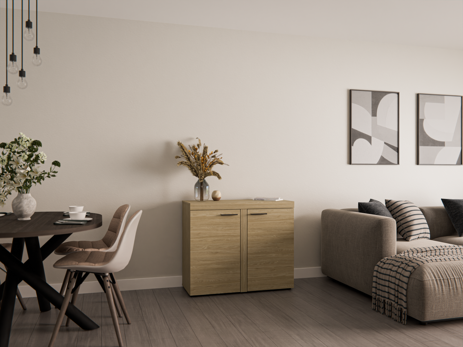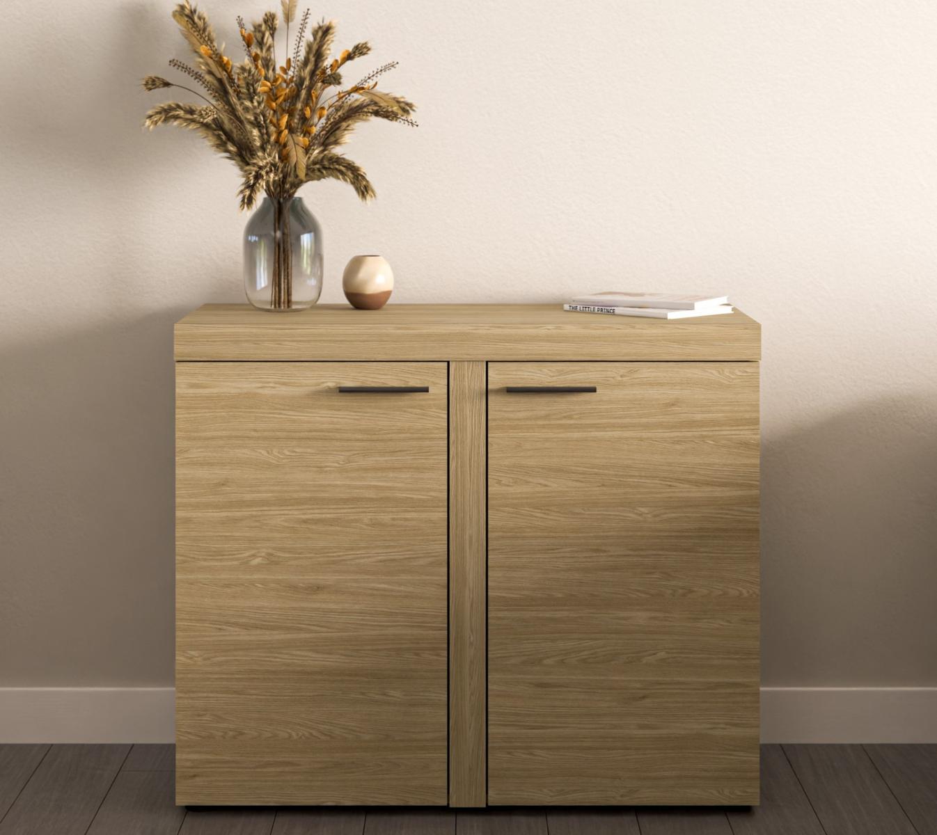 Komoda Rizo je nejen skvělým doplňkem k bytové stěně Rizo. Stejně výborně poslouží jako samostatný kus nábytku. Komoda má univerzální využití a nabízí dostatek úložného prostoru. Komoda je vyrobena z odolného a stálobarevného lamina. Komoda je dodávaná v demontu. Součástí balení je schematický montážní návod, včetně všech potřebných spojovacích prvků. Vyobrazené doplňky a dekorace nejsou v ceně.