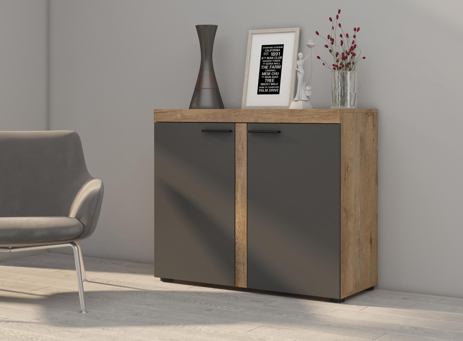 Komoda Rizo je nejen skvělým doplňkem k bytové stěně Rizo. Stejně výborně poslouží jako samostatný kus nábytku. Komoda má univerzální využití a nabízí dostatek úložného prostoru. Komoda je vyrobena z odolného a stálobarevného lamina. Komoda je dodávaná v demontu. Součástí balení je schematický montážní návod, včetně všech potřebných spojovacích prvků. Vyobrazené doplňky a dekorace nejsou v ceně.