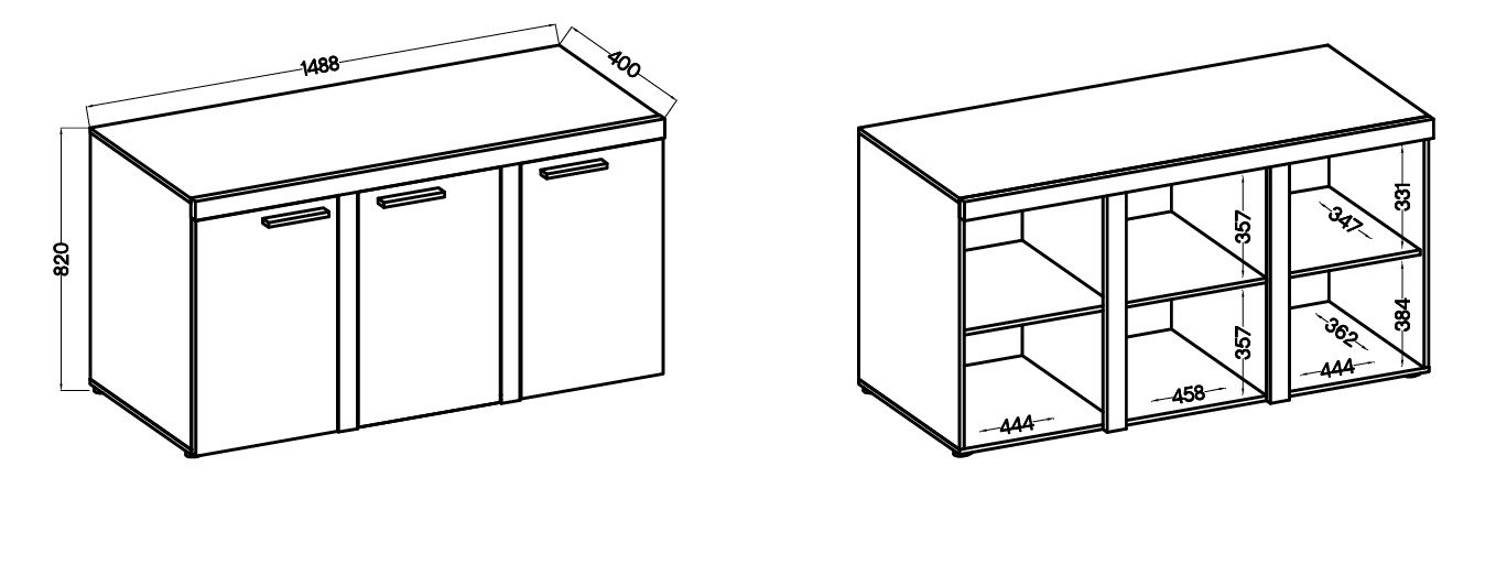 Komoda Rizo je nejen skvělým doplňkem k bytové stěně Rizo. Stejně výborně poslouží jako samostatný kus nábytku. Komoda má univerzální využití a nabízí dostatek úložného prostoru. Komoda je vyrobena z odolného a stálobarevného lamina. Komoda je dodávaná v demontu. Součástí balení je schematický montážní návod, včetně všech potřebných spojovacích prvků. Vyobrazené doplňky a dekorace nejsou v ceně. Rozměry: šířka: 148,8 cm, hloubka: 40,5 cm, výška: 82 cm