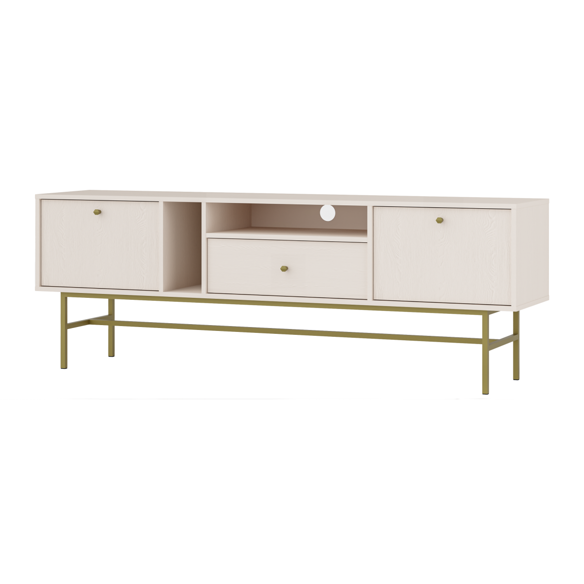 šířka 180 cm, 2 výklopná dvířka, 1 zásuvka, otvor pro kabely, kovové podnoží - barva zlatá