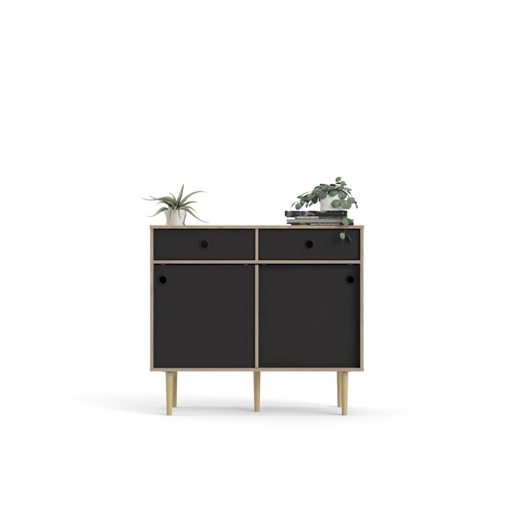 Komoda Ruby díky svému provední nabízí univerzální použití a dostatek úložného prostoru. S touto komodou budete mít doma přehledný a organizovaný pořádek. A pokud máte rádi retro styl, pak je tato komoda pro Vás jako stvořená. Komoda je zhotovená z lamina které je odolné a snadné na údržbu. Retro vzhled zdůrazňují vysoké nožky, kulaté výřezy místo úchytek a posuvné dvířka. Komodu nabízíme ve dvou barevných provedeních. Je dodávaná v demontu a součástí je montážní plánek včetně všech potřebných spojovacích materiálů. Vyobrazené dopňky a dekorace nejsou v ceně.