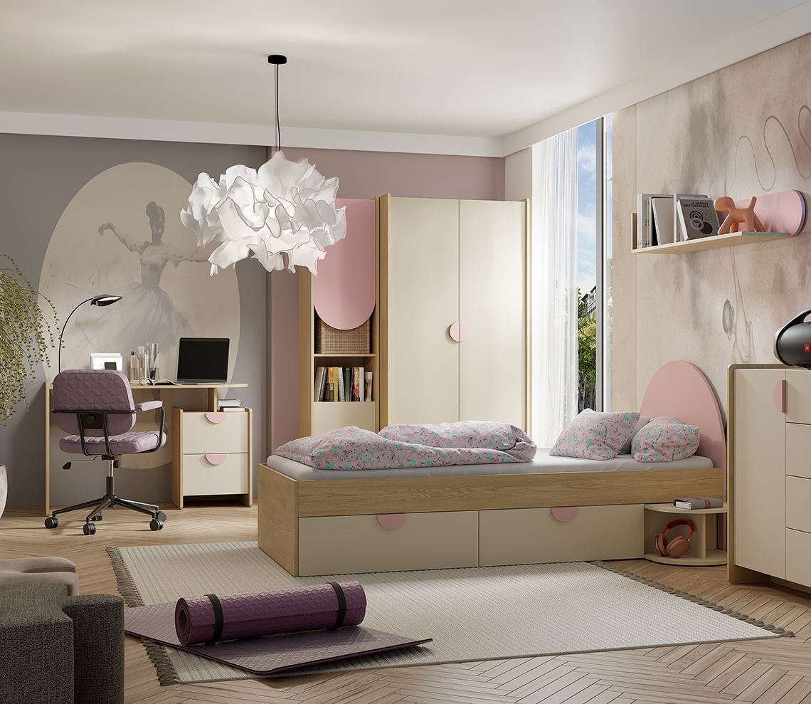 Kolekce dětského nábytku Leya přináší svěží a atraktivní design, který dokonale zútulní každý dětský pokoj. Jednotlivé prvky jsou navržené tak, aby podporovaly praktické uspořádání prostoru a nabídly dostatek úložných možností pro každodenní potřeby. Kvalitní zpracování a odolné materiály zajišťují dlouhou životnost i při aktivní užívání. Díky široké nabídce prvků lze sestavit pokoj přesně podle potřeb dítěte i dostupného prostoru.