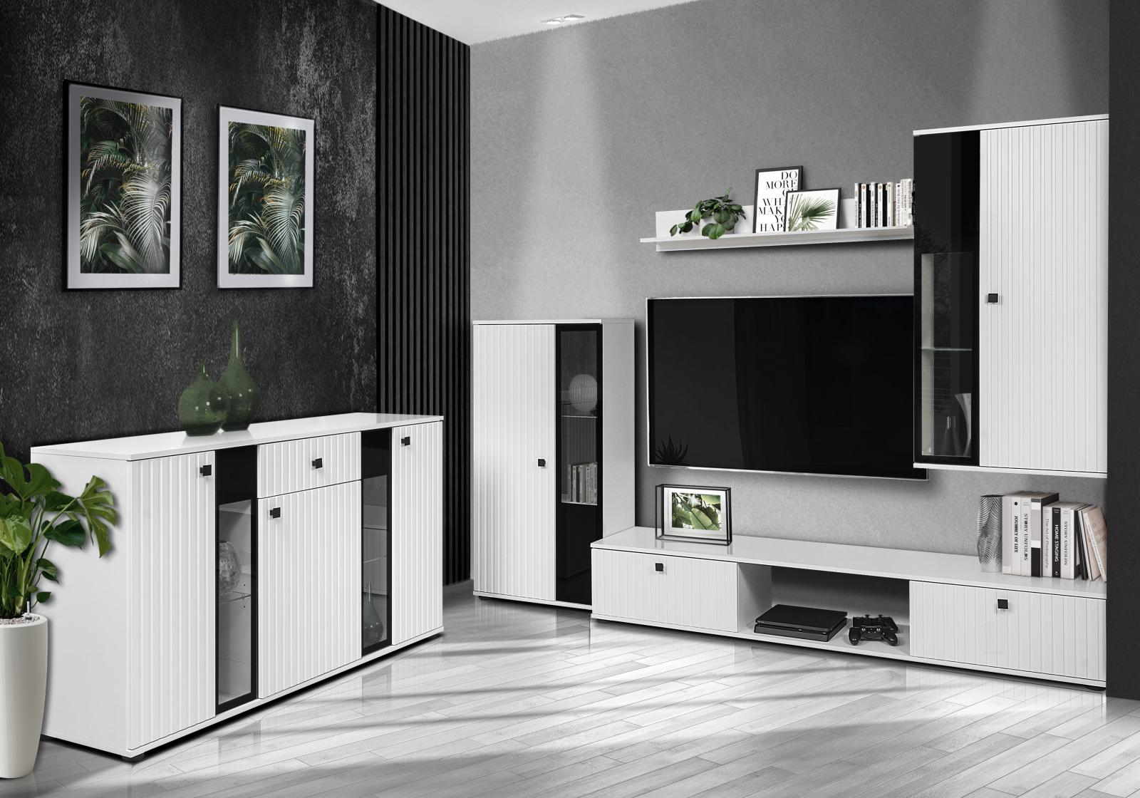 šířka 140 cm, zásuvka + 3 dvířka - MDF, tvrzené sklo s odolným keramickým potiskem