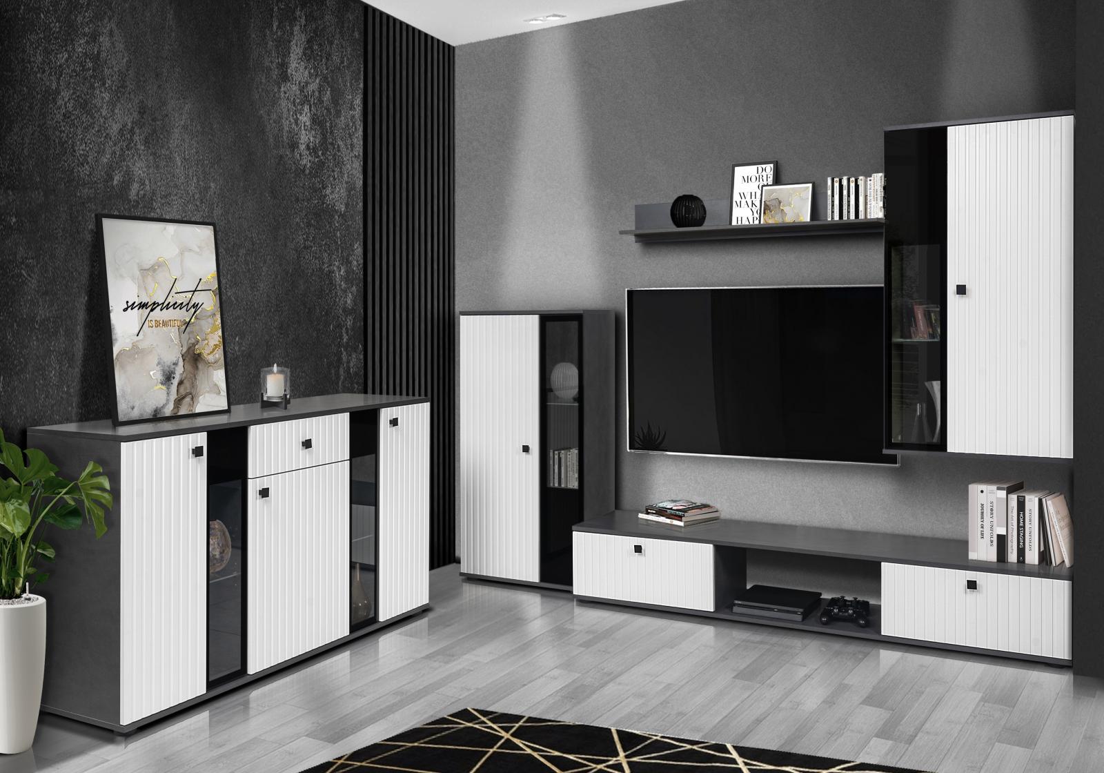 šířka 140 cm, zásuvka + 3 dvířka - MDF, tvrzené sklo s odolným keramickým potiskem