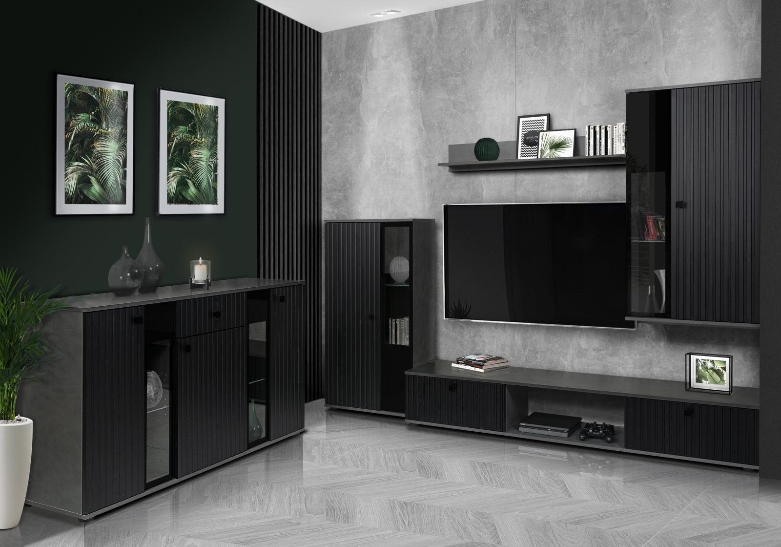 šířka 140 cm, zásuvka + 3 dvířka - MDF, tvrzené sklo s odolným keramickým potiskem