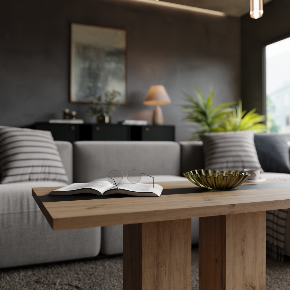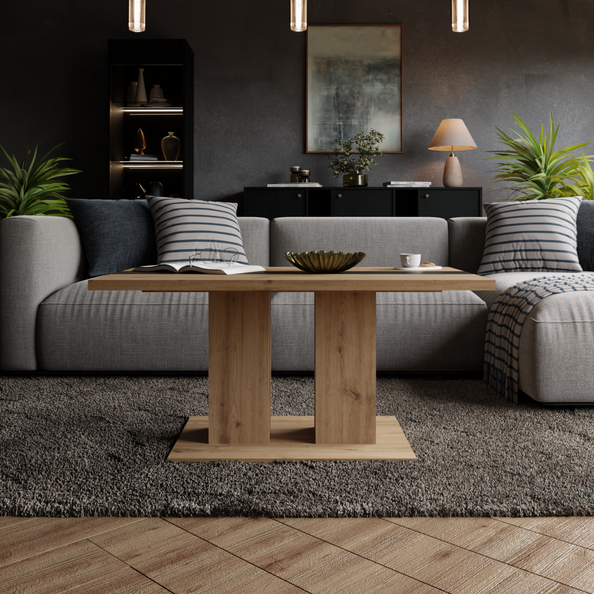 Konferenční stolek Boris je atraktivní stolek, který je vyrobený z lamina ve velmi oblíbeném a moderním dekoru dub artisan s černým pruhem uprostřed. Stolek je dostatečně velký na vše, co si budete potřebovat odložit. Hrnek s kávou nebo čajem, talíř, knihu, telefon, notebook, nebo klidně i unavené nohy po celodenním maratonu. Stolek je dodávaný v demontu. Součástí balení je montážní plánek včetně všech potřebných spojovacích materiálů.
