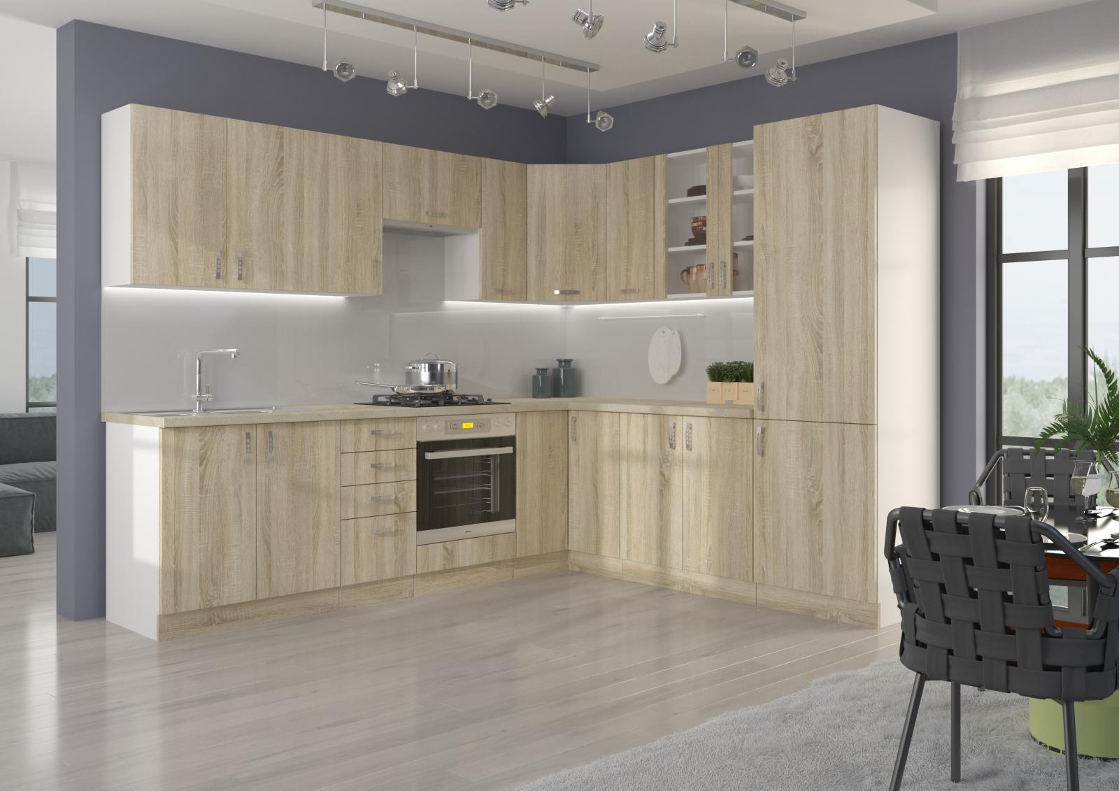 Nadčasová série Sally nabízí moderní a praktické kuchyňské skříňky v různých velikostech. Z široké škály skříněk v dekoru dub lefkas si snadno sestavíte svou vysněnou kuchyň. Kuchyňská dvířka jsou vyrobená z odolného a snadno udržovatelného lamina.