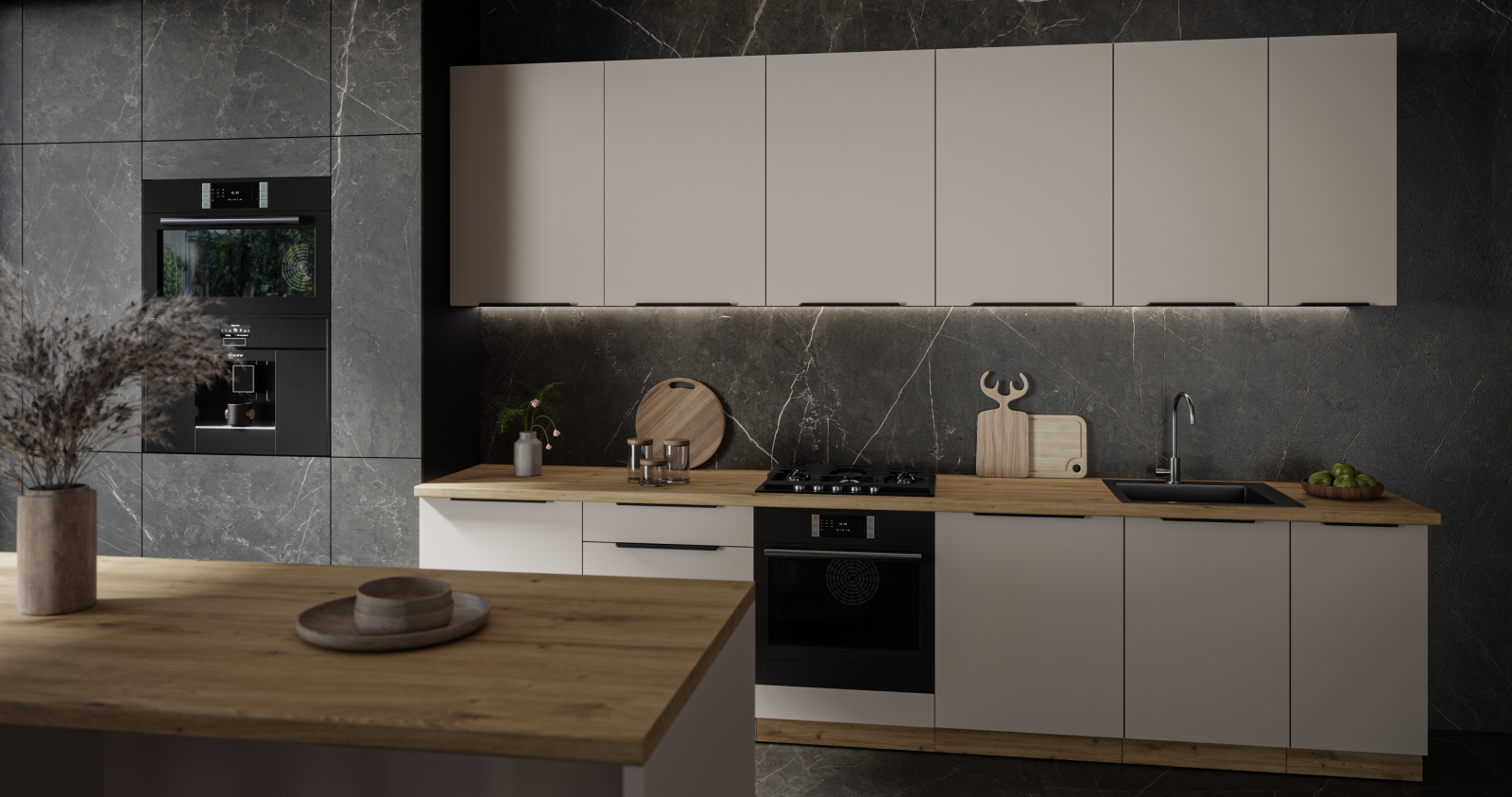 Kolekce modulárních kuchyňských skříněk Selva okouzlí harmonickým designem a moderní elegancí. Dvířka v dekoru kašmír v kombinaci s přírodními detaily dodají interiéru svěžest a vytvoří jedinečnou atmosféru, díky níž budou každodenní chvíle v kuchyni ještě příjemnější. Z bohaté nabídky série Selva si můžete sestavit kuchyň přesně podle vašich představ a prostorových možností.