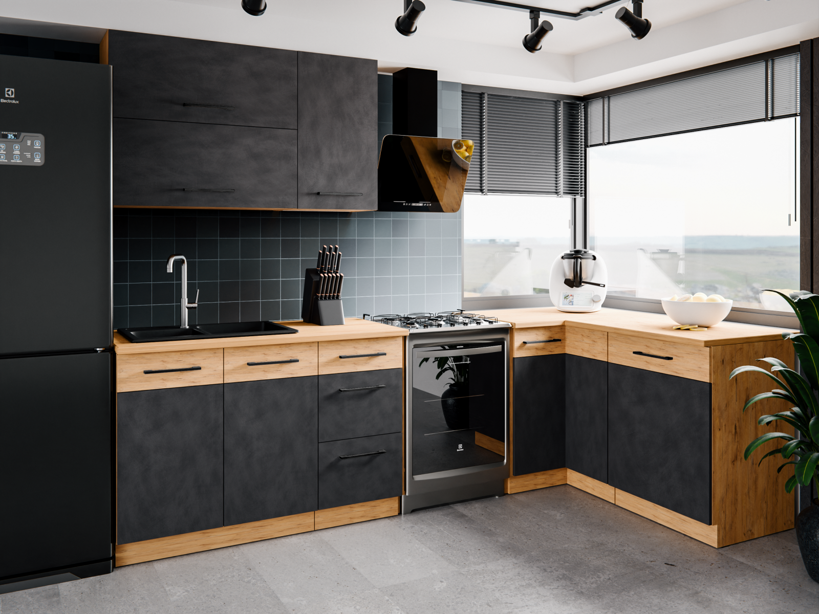 Nadčasová série kuchyňských skříněk Vega spojuje funkčnost s elegantním stylem a poskytuje dostatek úložného místa i pohodlí. Díky široké nabídce prvků si můžete kuchyň sestavit přesně podle svých představ. Dvířka v dekoru Matera vytvářejí výrazný kontrast, který v kombinaci s teplým odstínem dubu Lancelot dodává interiéru útulnou a klidnou atmosféru.