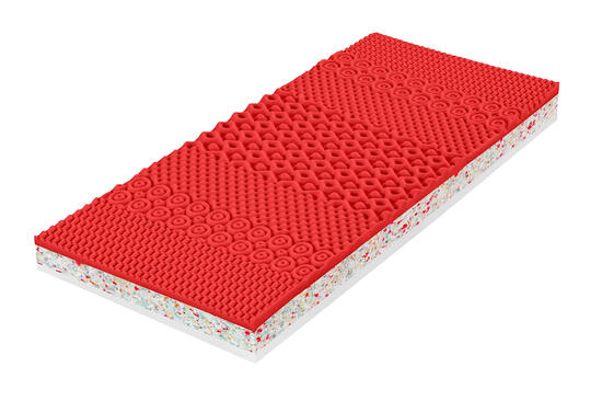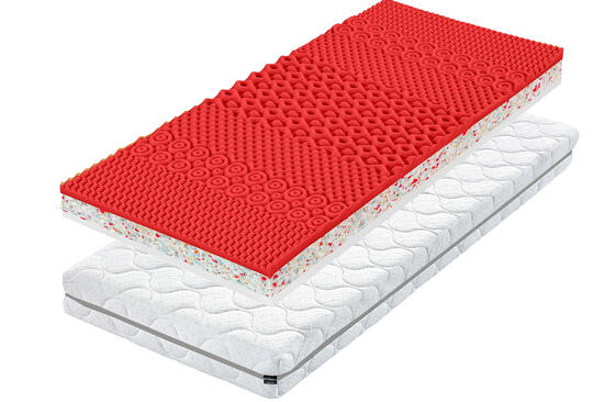 Matrace je oboustranná, takže si můžete zvolit tuhost podle svých preferencí – bílá strana s tuhostí 8 a růžová strana s tuhostí 9. Jádro tvoří tři vrstvy pěny Flexifoam. Bílá strana Flexi Classic z neprofilované pěny je pružná a prodyšná, zatímco růžová strana Flexi Relax má 7 anatomických zón a nabízí jemný masážní efekt. Střední vrstva zajišťuje pevnost a dlouhou životnost matrace.