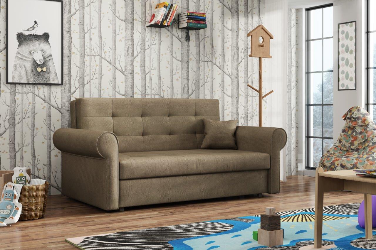 Rozkládací pohovka Vivian je díky svým rozměrům vhodná i do menších pokojů. Své uplatnění najde nejen v obývacím pokoji, ale také v dětském, studentském, nebo hostinském pokoji. Jednoduchým rozložením pomocí automatu, získáte lůžko k příležitostnému přespání Vaší návštěvy. Výplň sedáku tvoří vlnité pružiny v kombinaci s PUR pěnou. Pohovka je potažena kvalitní látkou a nabízíme ji v několika trendy odstínech. Pohovka disponuje i nepostradatelným úložným prostorem, který využijete např. na deku a polštář. V ceně pohovky je 1 dekorační polštář. Ostatní vyobrazené dekorace nejsou v ceně.