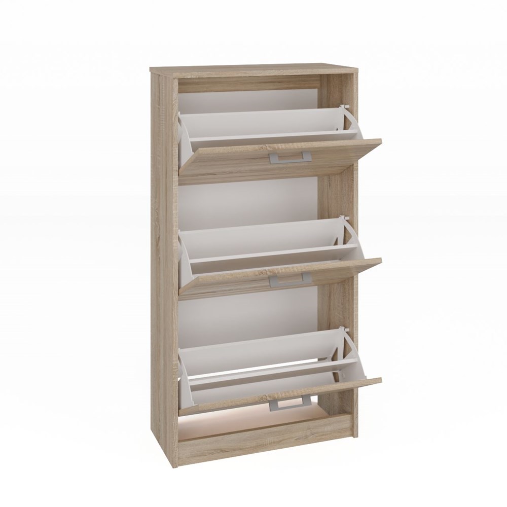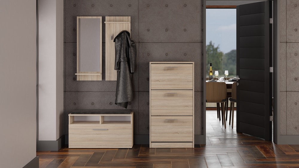 Nadčasový botník Pura s praktickými výklopnými dvířky je ideální volbou do každé předsíně. Pečlivé zpracování a minimalistický design dodají vaší předsíni styl i funkční úložný prostor. Nábytek je vyroben z vysoce kvalitního lamina, které je snadno udržovatelné a odolné proti oděru, dlouhou životnost nábytku zajišťují hrany zakončené ABS materiálem.