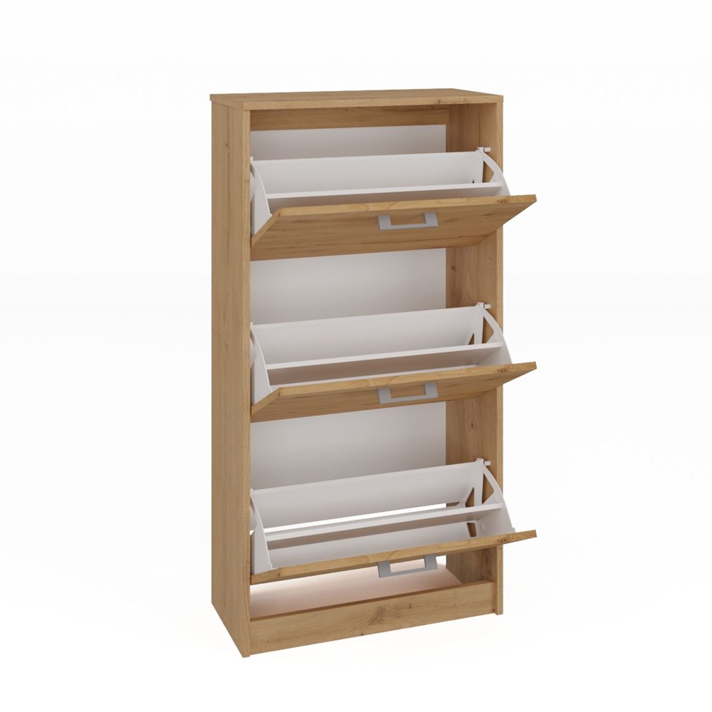Nadčasový botník Pura s praktickými výklopnými dvířky je ideální volbou do každé předsíně. Pečlivé zpracování a minimalistický design dodají vaší předsíni styl i funkční úložný prostor. Nábytek je vyroben z vysoce kvalitního lamina, které je snadno udržovatelné a odolné proti oděru, dlouhou životnost nábytku zajišťují hrany zakončené ABS materiálem.