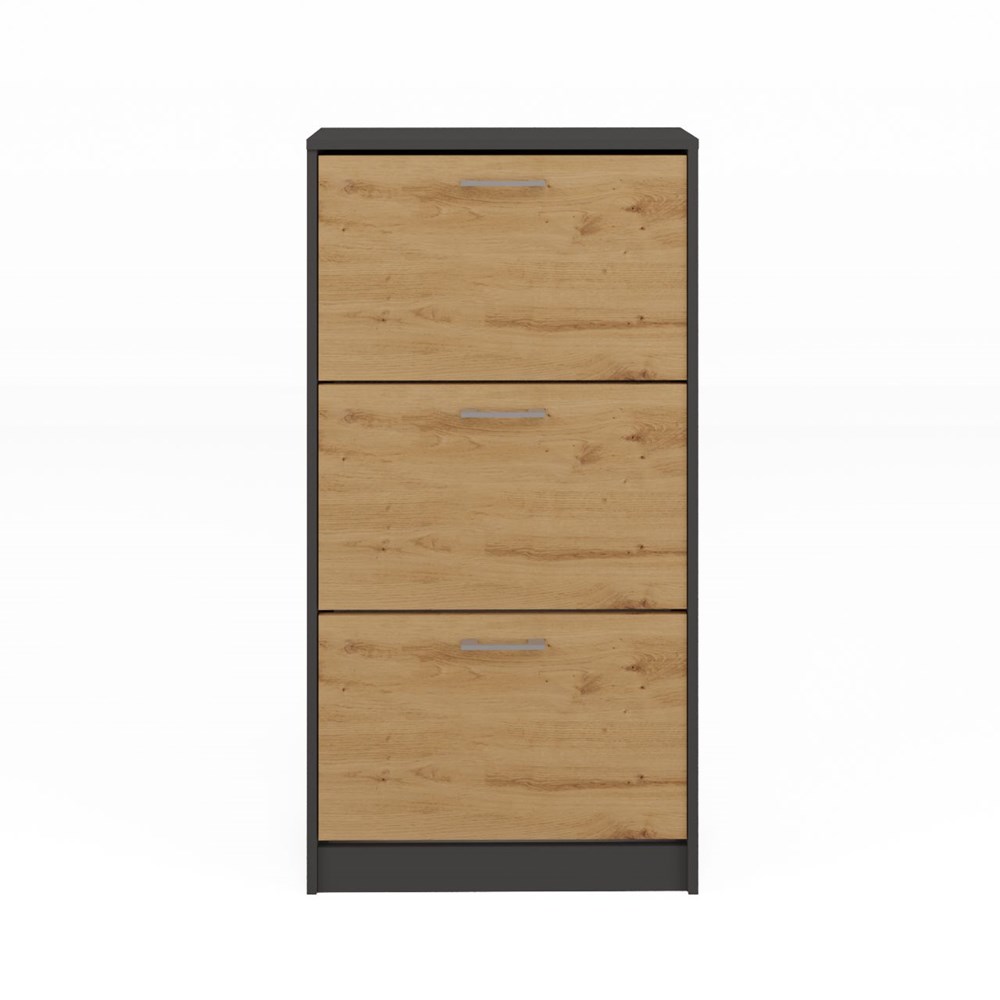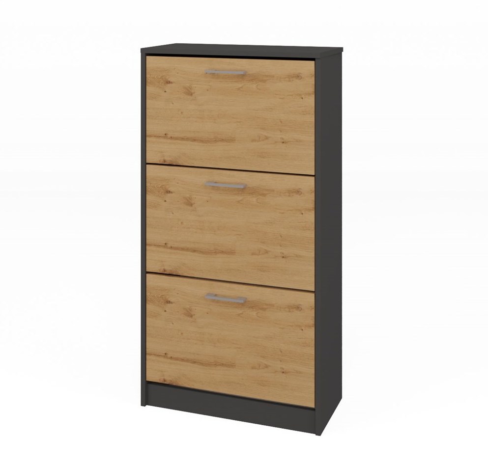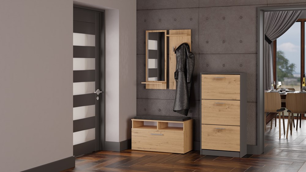 Nadčasový botník Pura s praktickými výklopnými dvířky je ideální volbou do každé předsíně. Pečlivé zpracování a minimalistický design dodají vaší předsíni styl i funkční úložný prostor. Nábytek je vyroben z vysoce kvalitního lamina, které je snadno udržovatelné a odolné proti oděru, dlouhou životnost nábytku zajišťují hrany zakončené ABS materiálem.