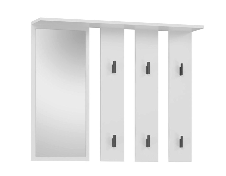 Nástěnný věšák se zrcadlem a policí Pargas splní očekávání všech, kteří oceňují kombinaci elegance a praktičnosti. Je ideálním řešením pro každou předsíň – ať už malou, nebo prostornou. Nábytek je vyroben z kvalitního lamina, které je snadno udržovatelné a odolné proti oděru, dlouhou životnost nábytku zajišťují hrany zakončené odolným ABS materiálem.