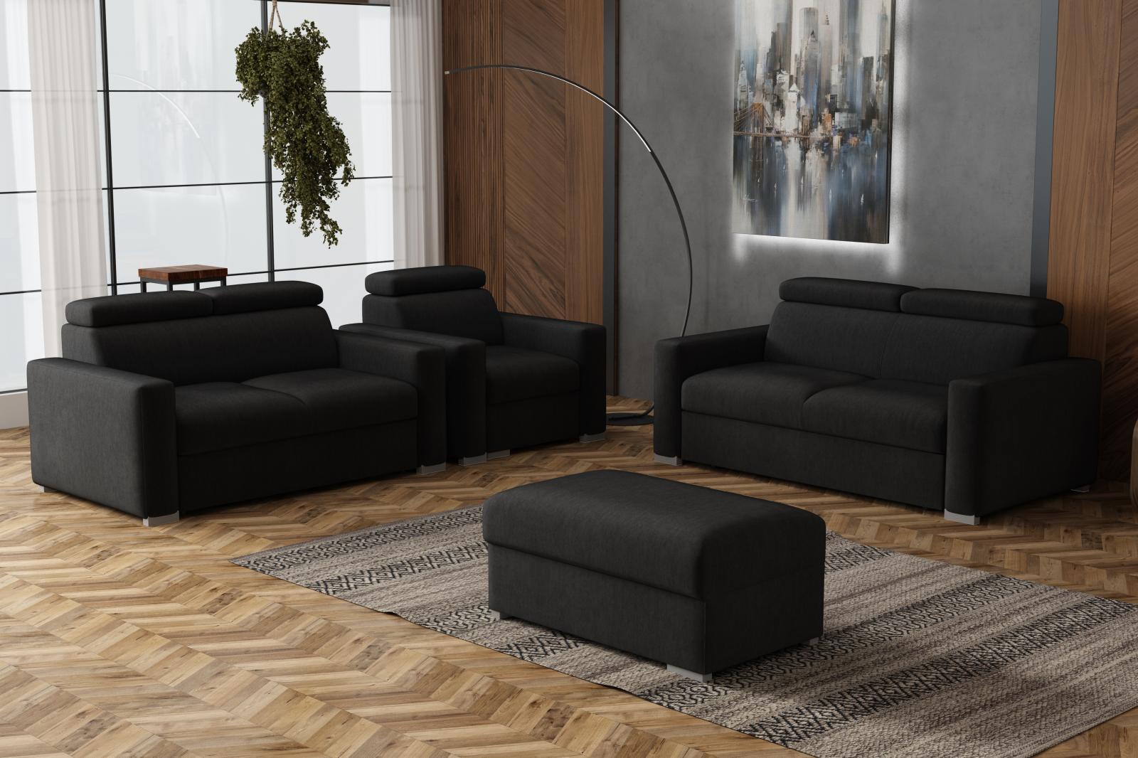 Rozměry trojsedu: 190 x 100 cm dvojsedu: 170 x 100 cm křesla: 105 x 100 cm taburet s úložným prostorem: 100 x 60 cm
