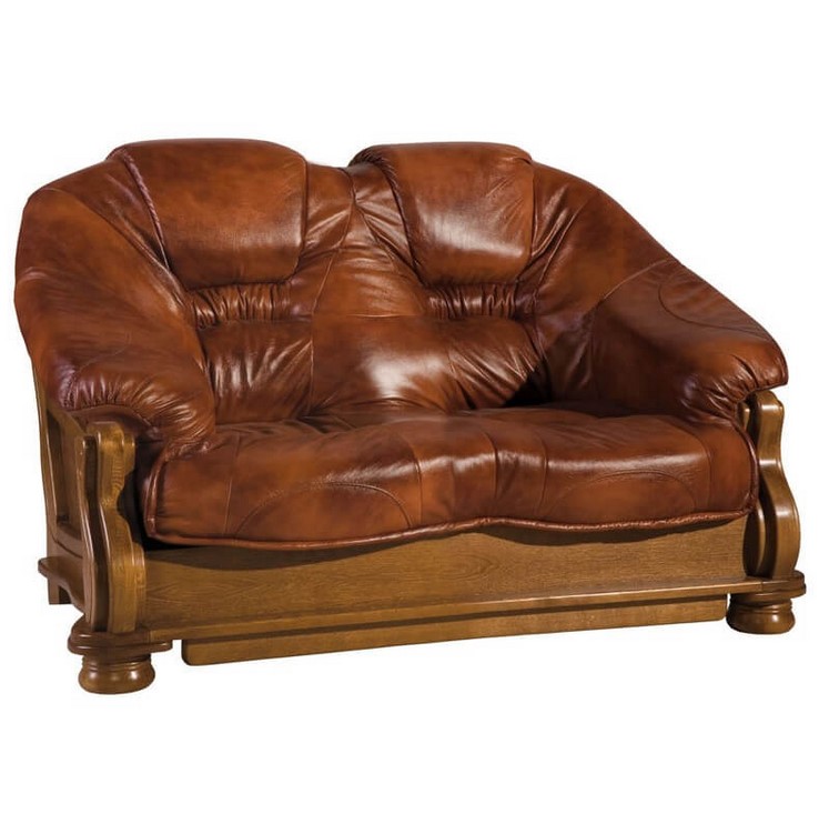 Čalounění z pravé přírodní kůže dodává sedačce jedinečný vzhled i příjemný dotek, zatímco masivní dubová konstrukce zaručuje dlouhou životnost a vysokou odolnost. Stylové dřevěné detaily a precizní šití podtrhují luxusní charakter celé kolekce.