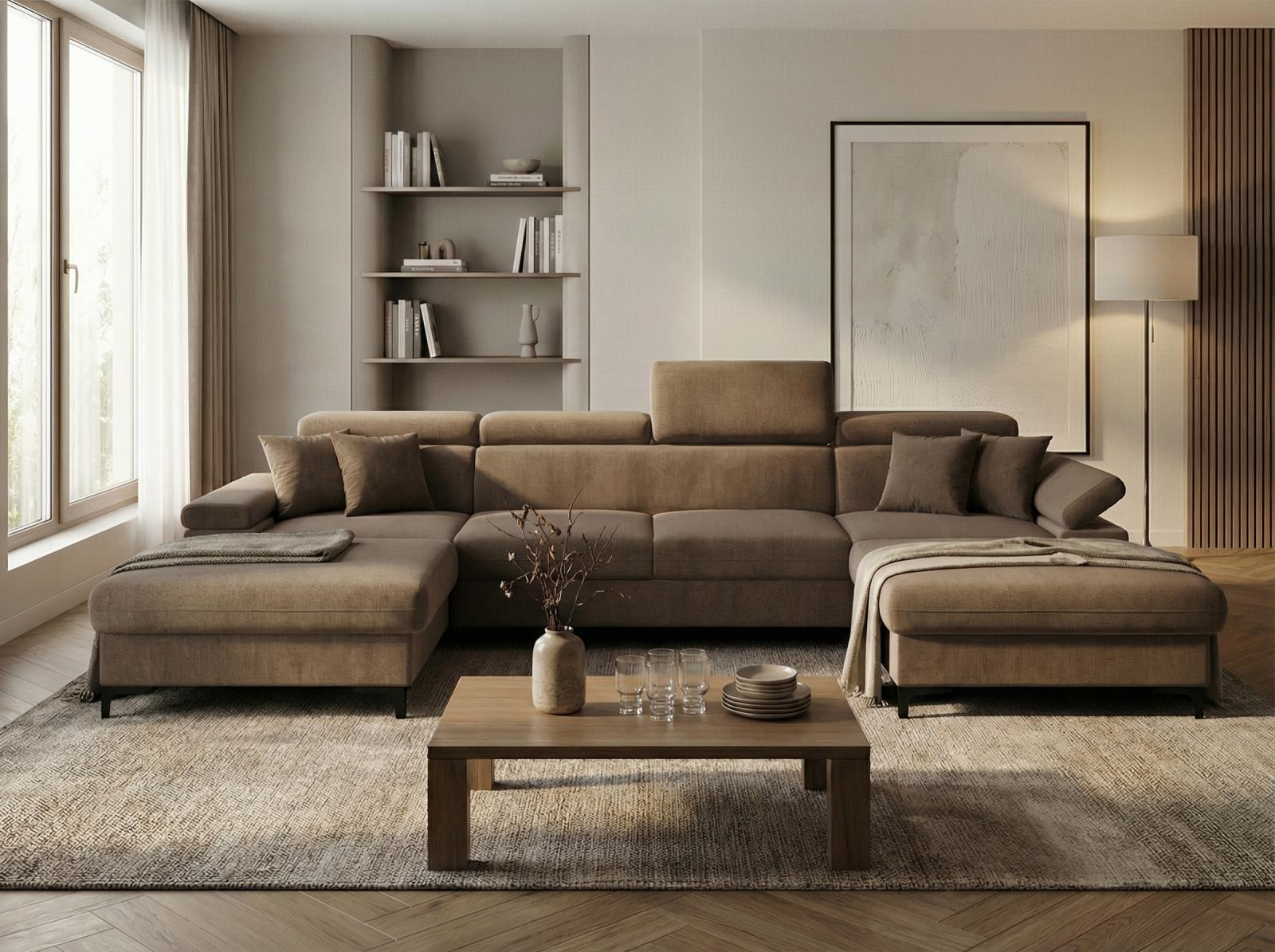 Sedací souprava Apolena ve tvaru U nabízí nadstandardní prostor k sezení, vysoký komfort a praktické využití pro každodenní odpočinek. Konstrukce je tvořena kostrou s pružinami a kvalitní PUR pěnou, což spolu s výplní sedáků zajišťuje pohodlné a dlouhodobé sezení.