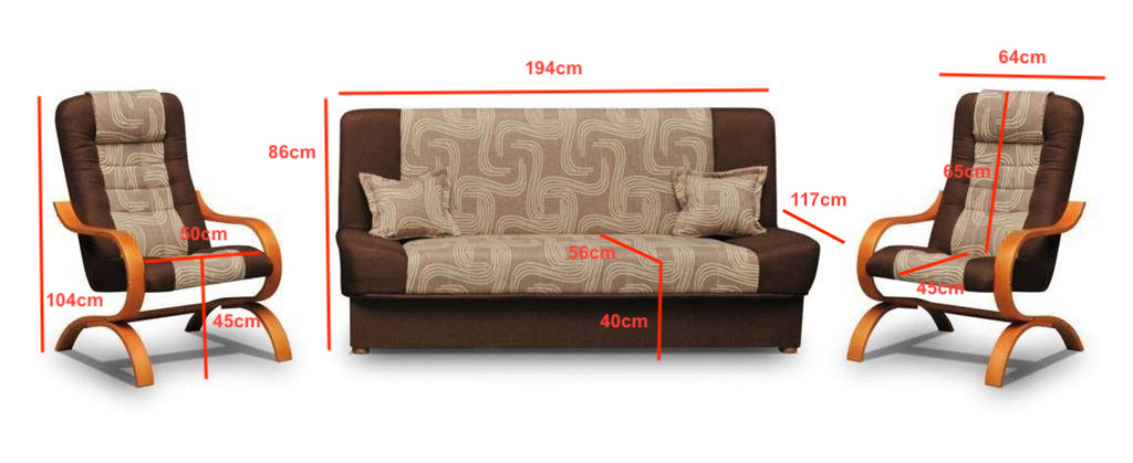 Elegantní sedací souprava Jola je vyrobena v klasickém provedení 3F+1+1. Křesla mají lehkou konstrukci z ohýbaného dřeva, díky tomu nezaberou moc místa a lehce se s nimi manipuluje. Třísed je rozkládací. Jednoduchým rozložením pomocí systému "klik klak" získáte lůžko k občasnému přespání Vaší návštěvy. Součástí je i úložný prostor na lůžkoviny. Křesla jsou dodávána v demontu. Vyobrazené dopňky a dekorace nejsou v ceně.