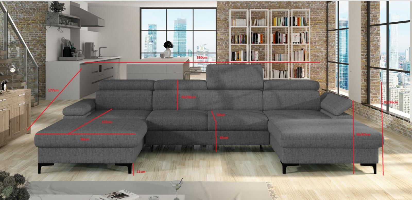 | Šířka: | 330 cm | Hloubka sedu: | 58 cm |