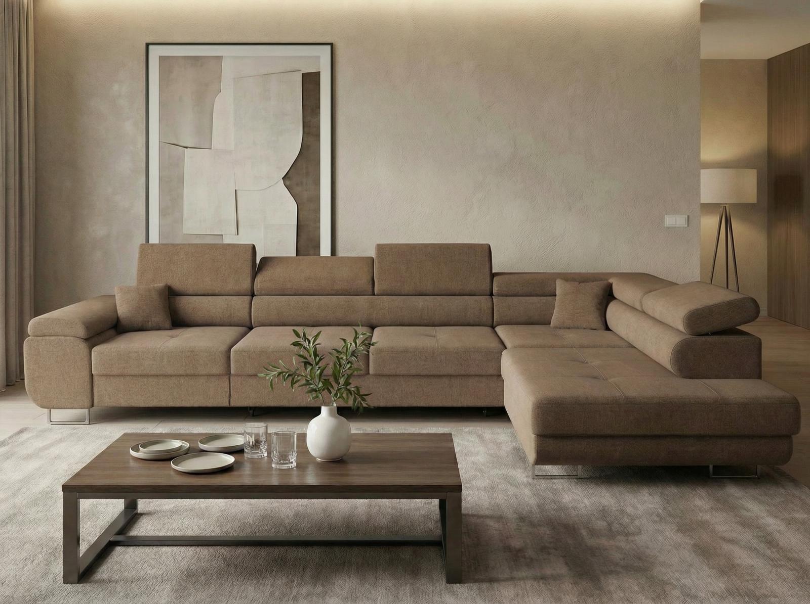 Sedací soupravu nabízíme v levém i pravém provedení. Vyobrazené doplňky a dekorace nejsou v ceně.