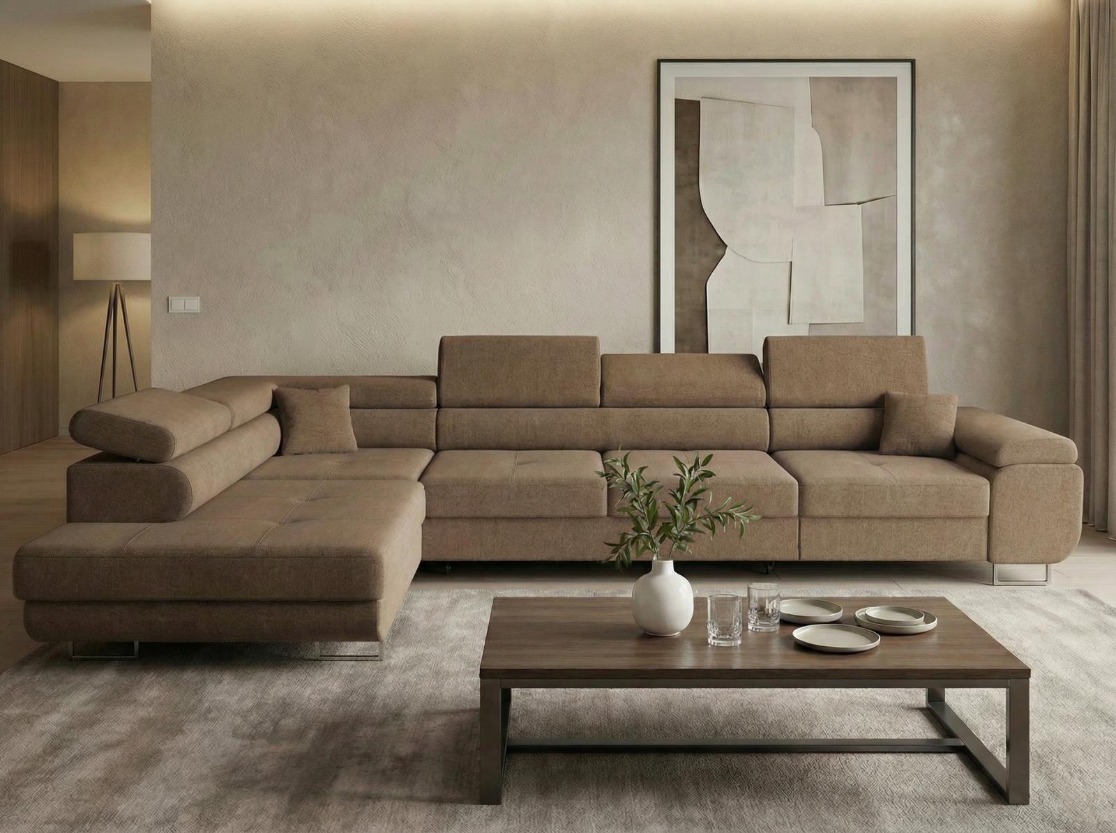 Sedací soupravu nabízíme v levém i pravém provedení. Vyobrazené doplňky a dekorace nejsou v ceně.