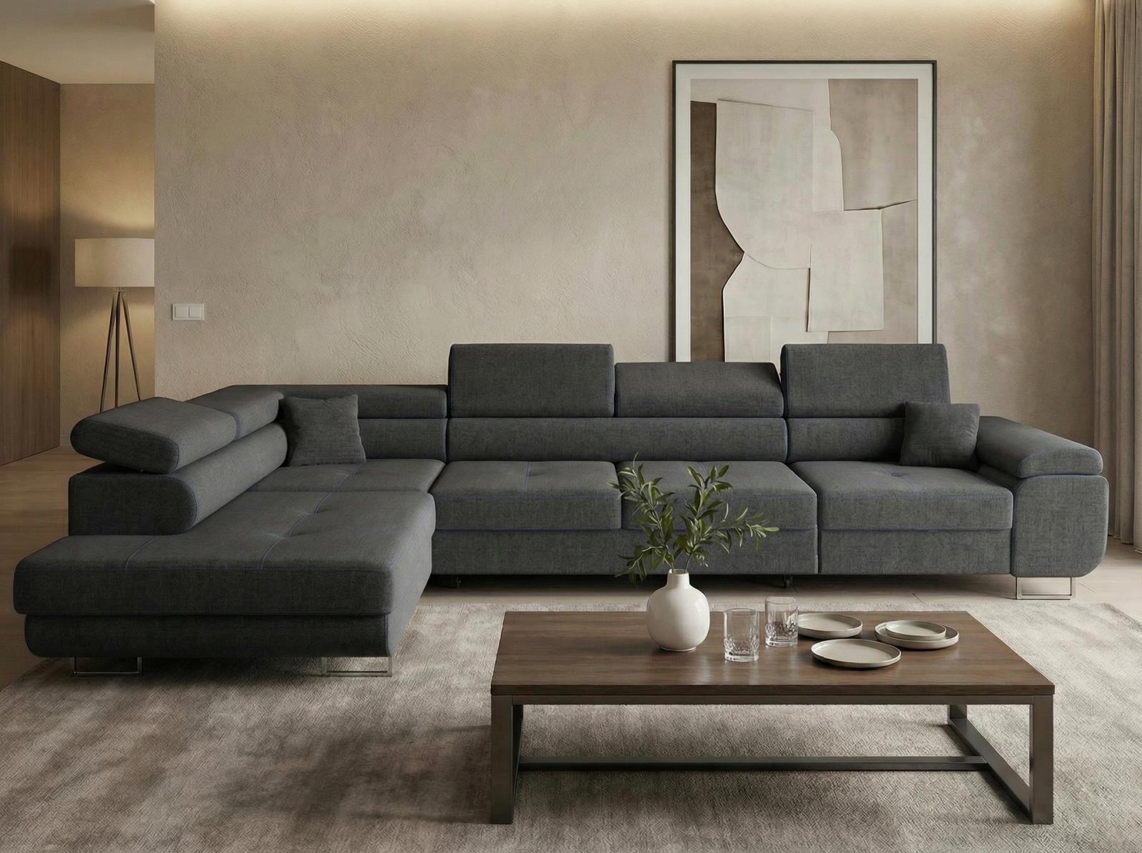 Sedací soupravu nabízíme v levém i pravém provedení. Vyobrazené doplňky a dekorace nejsou v ceně.
