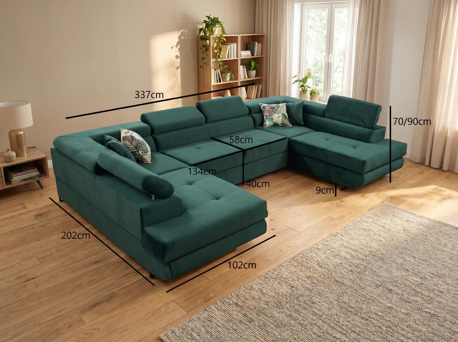 | Šířka: | 337 cm | Hloubka sedu: | 58 cm |