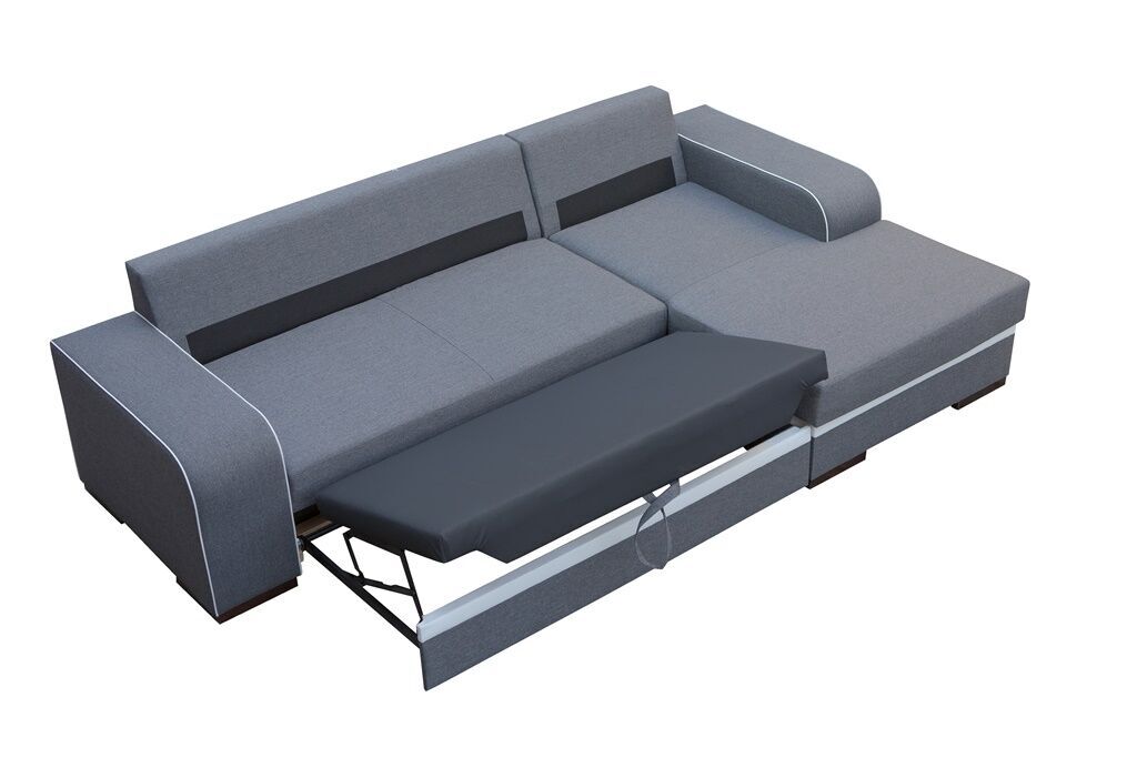 Elegantní rohová sedací souprava Funny je vhodná do každého interiéru. Umístit ji můžete ke stěně, nebo do prostoru. Sedací souprava je rozkládací a má také praktický úložný prostor. Jednoduchým rozložením vznikne dostatečně velké lůžko vhodné k příležitostnému spaní. Výplň sedáku tvoří pružiny faliste s kvalitní PUR pěnou. Tato kombinace zajistí pohodlné sezení. Sedací souprava je potažena velmi oblíbenou kvalitní látkou Inari. Zajímavým prvkem je proužek v kontrastní barvě, lemující sedací soupravu i polštáře. Tuto sedačku nabízíme v několika barevných variantách. V ceně sedací soupravy jsou 3 velké opěrné polštáře. Ostatní vyobrazené dekorace nejsou v ceně.