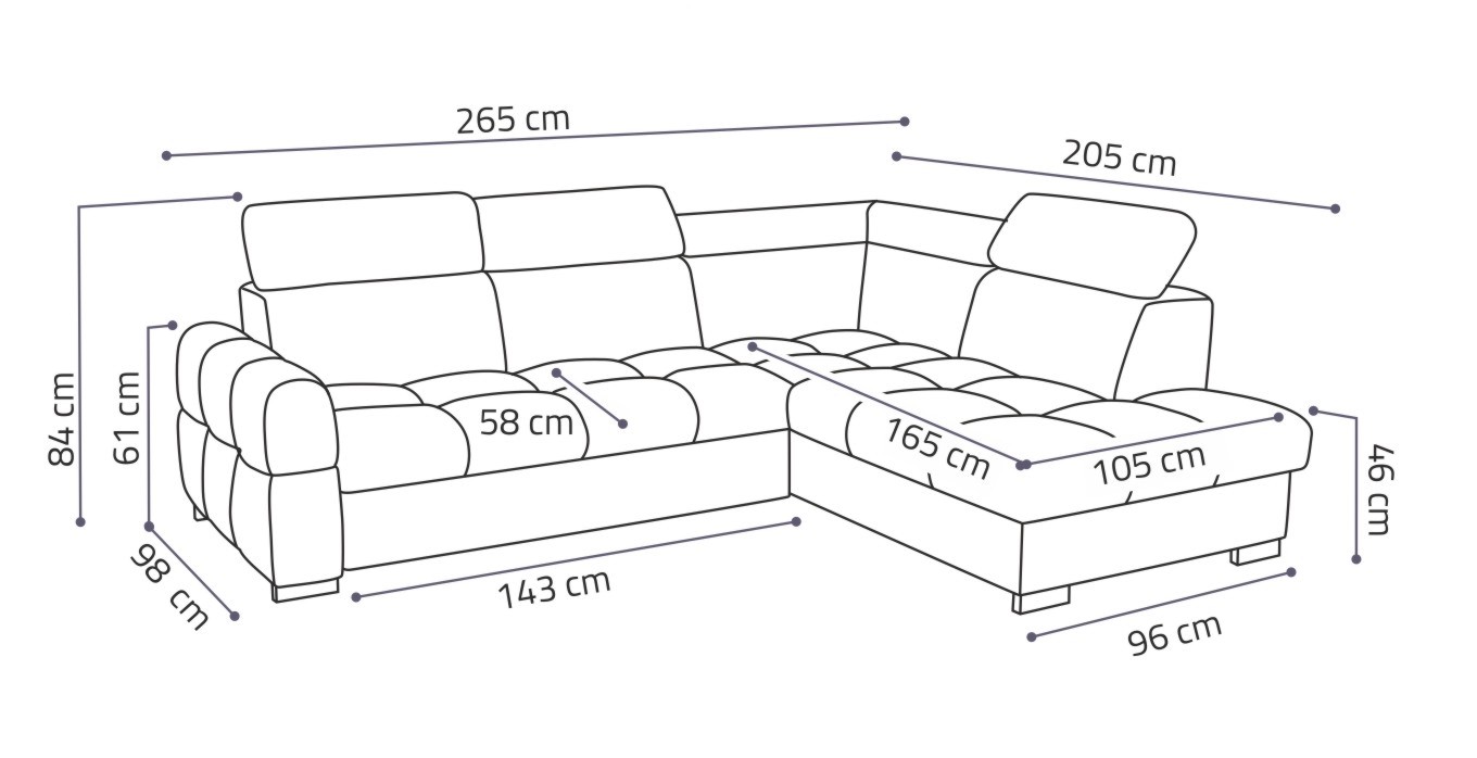 | Výška sedu: | 46 cm | Šířka: | 265 cm |