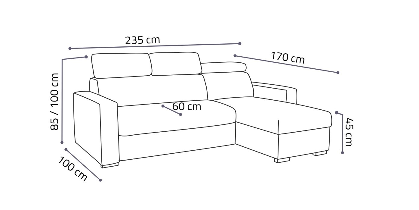 | Výška sedu: | 45 cm | Šířka: | 235 cm |