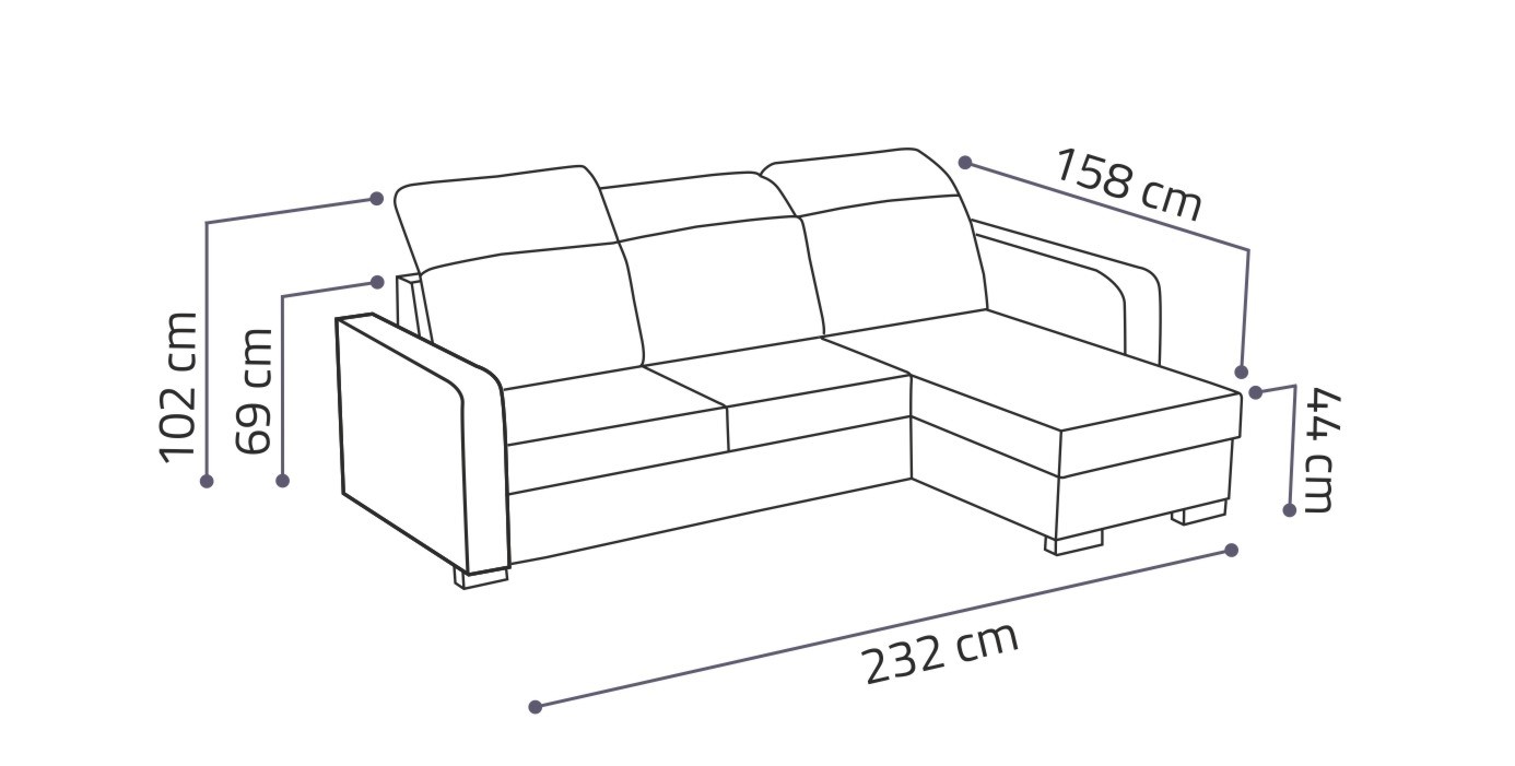 | Výška sedu: | 44 cm | Šířka: | 232 cm |