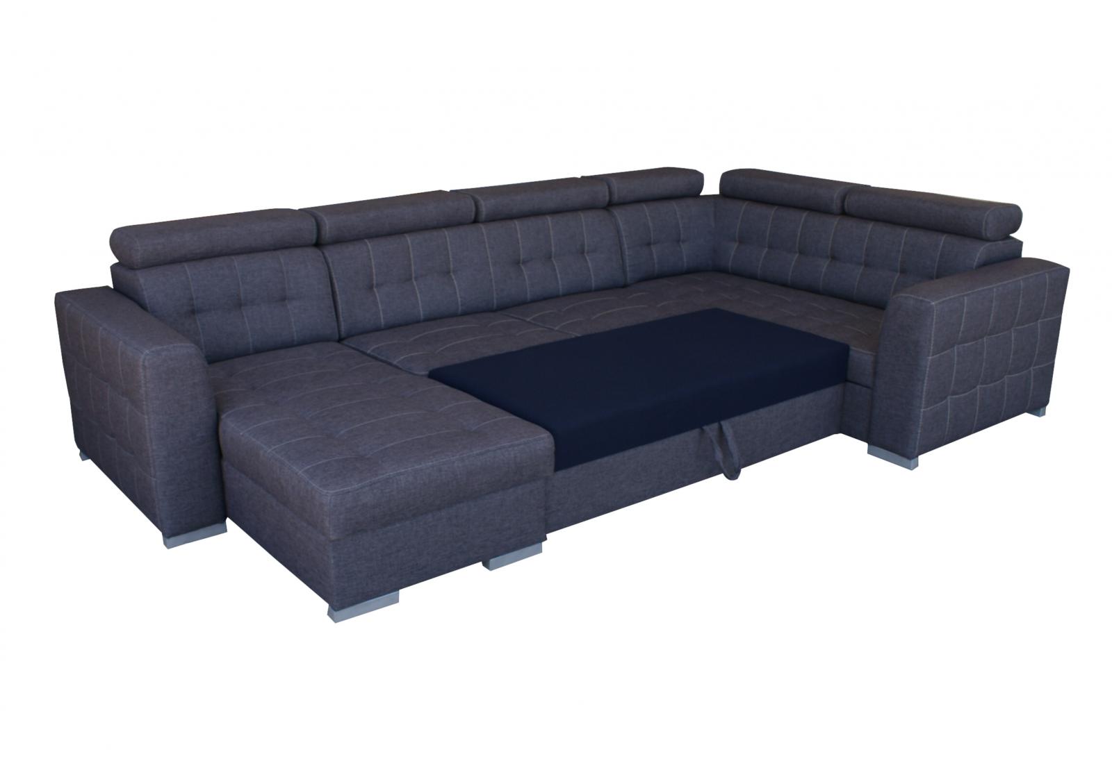 Sedací souprava Zara ve tvaru U osloví každého, kdo preferuje moderní vzhled a zároveň pohodlí a praktičnost. Je potažena kvalitní potahovou látkou s kontrastním prošitím. Sedací souprava je velmi pohodlná a dostatečně velká na posezení s přáteli, nebo rodinou. Pro případ, že se návštěva zdrží přes noc, je sedací souprava vybavena rozkladem, díky kterému sedací soupravu jednoduše přeměníte v prostorné lůžko. Sedací souprava má 2 praktické úložné prostory, které můžete využít např., na lůžkoviny. Pohodlí při sezení zajišťuje výplň sedáků, kterou tvoří kombinace pružin faliste s kvalitní PUR pěnou. Komfort a pohodlí při odpočinku zvyšuje polohovací opěrka hlavy. Sedací soupravu nabízíme na objednávku i v jiných potahových látkách, v levém i pravém provedení, nebo také v provedení do L. K sedací soupravě je možno dokoupit křeslo a malý nebo velký taburet.