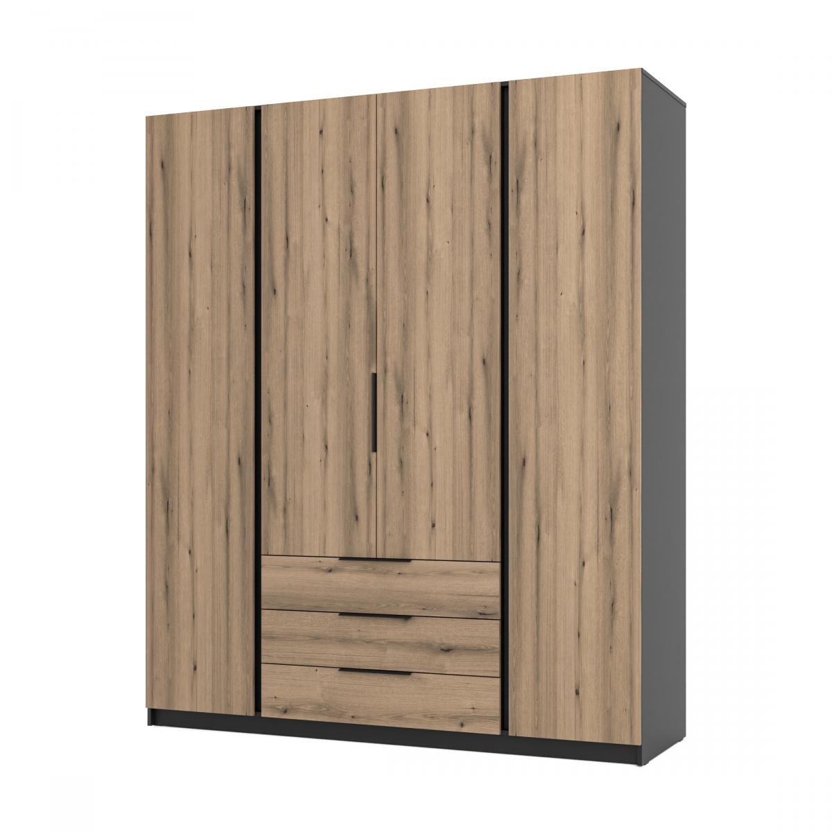 šířka 200 cm, barva černá/dub evoke, 3 šuplíky, 11 polic, šatní tyč