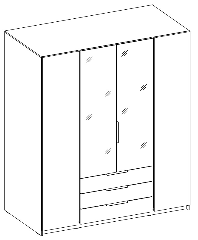 Šatní skříň Keny III v moderním designu má šířku 200 cm a je rozdělena na tři praktické části. Vnitřní uspořádání kombinuje závěsnou tyč, 11 polic a 3 šuplíky, což umožňuje přehledné a praktické rozdělení šatníku.