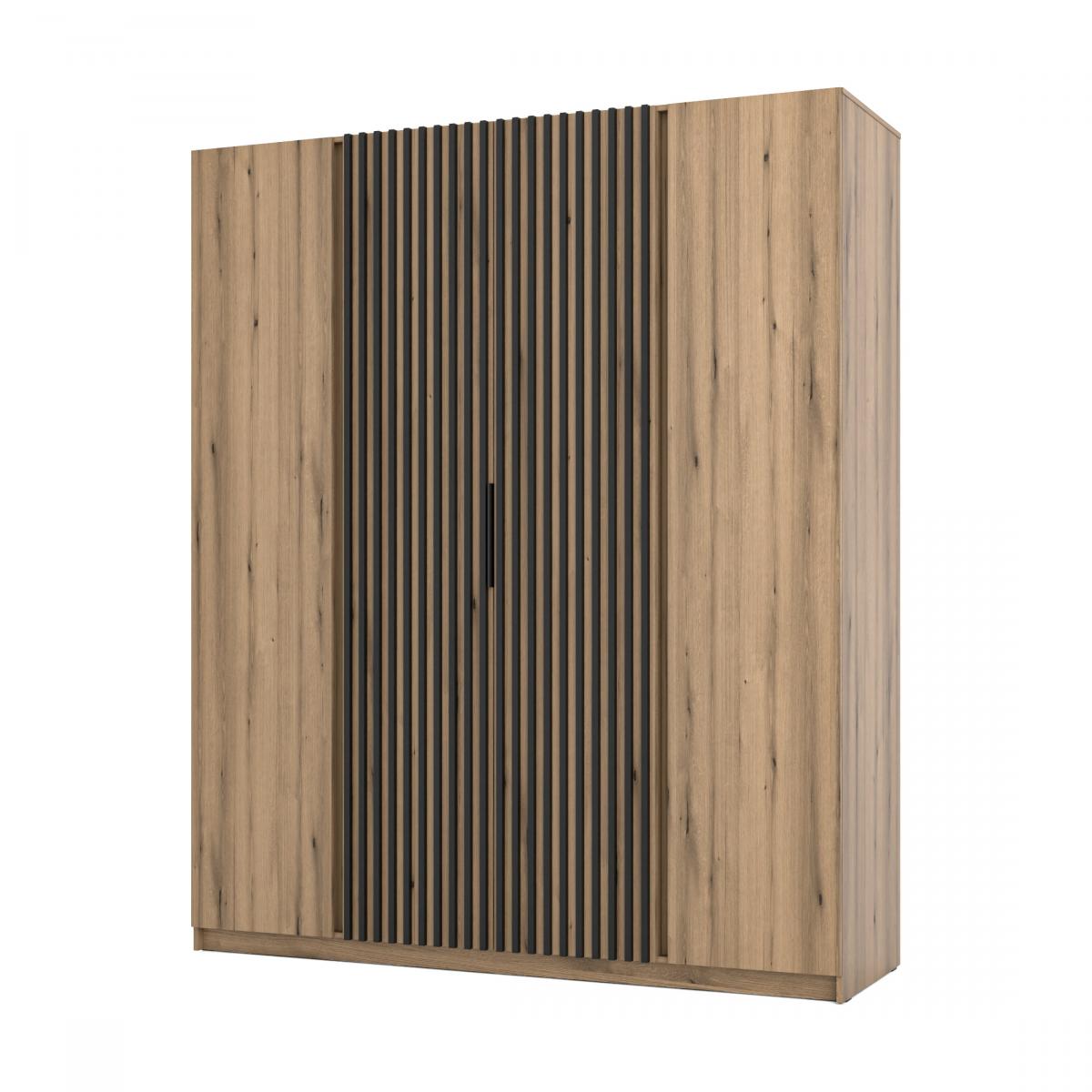 šířka 200 cm, barva černá/dub evoke, 11 polic, šatní tyč, lamely