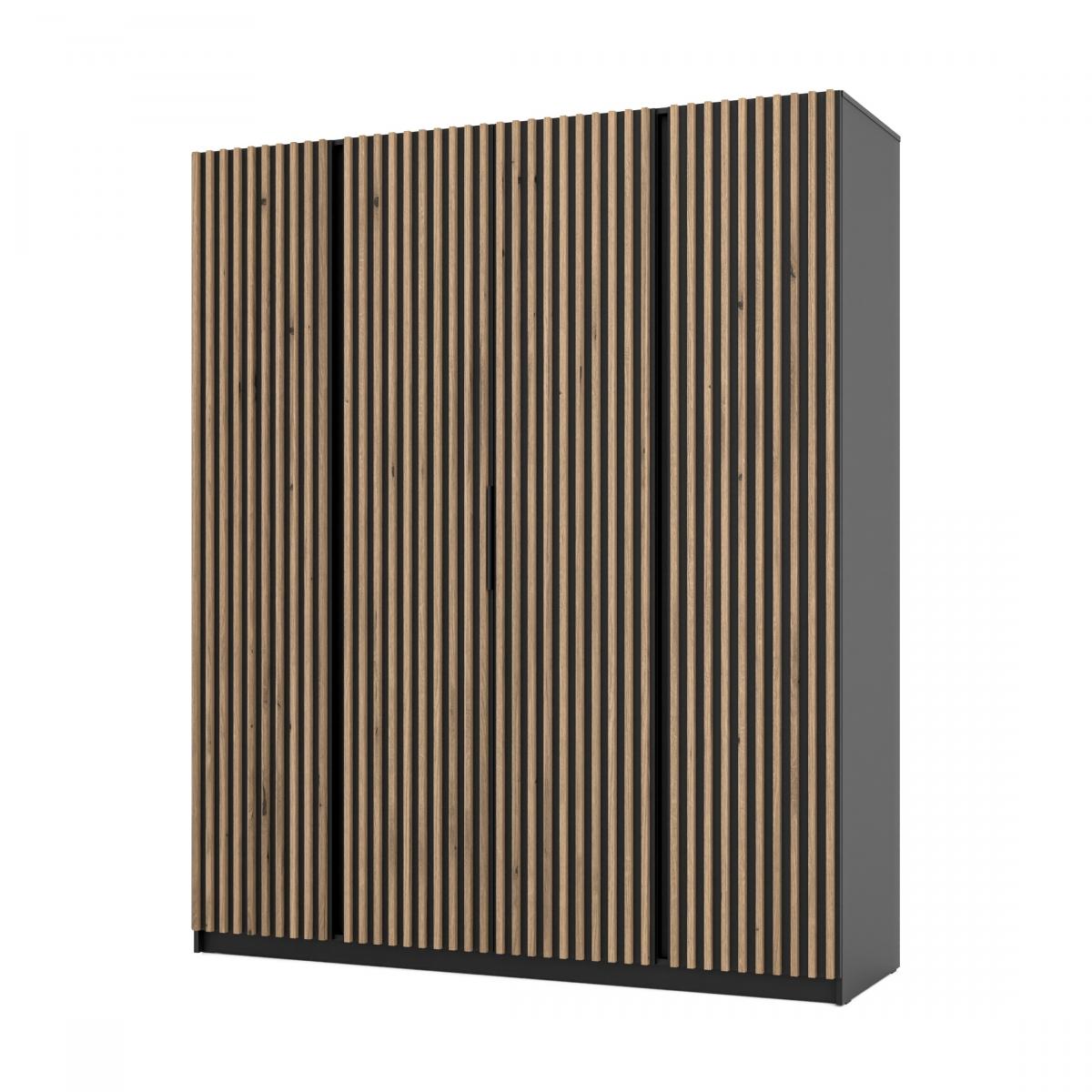 šířka 200 cm, barva černá, 11 polic, šatní tyč, lamely