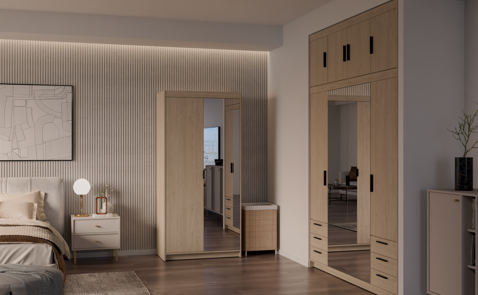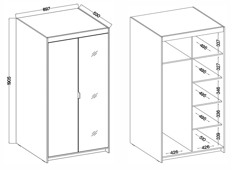šířka 90 cm, 2 dveře, s jedním zrcadlem