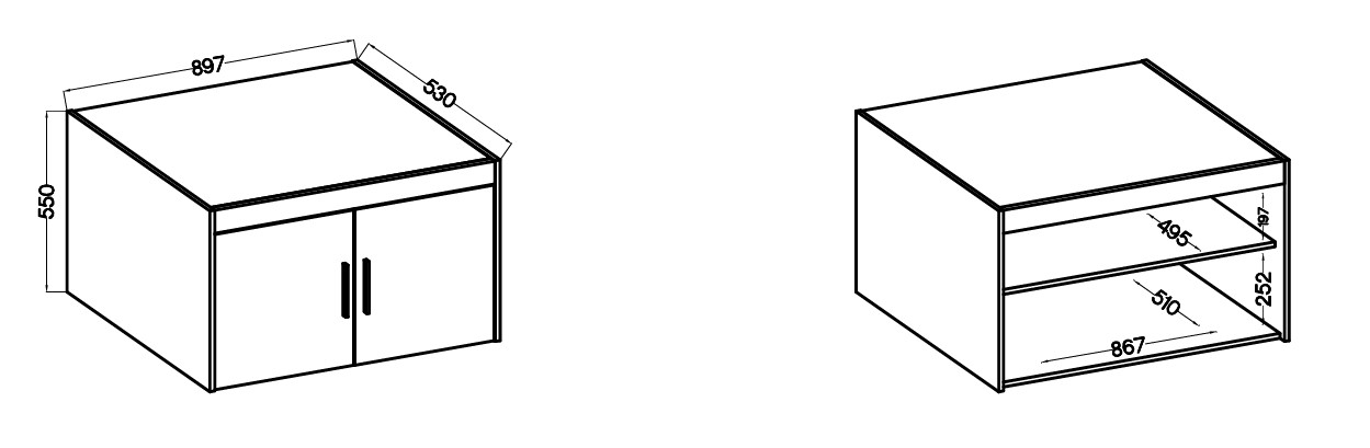 šířka 90 cm, 2 dvířka, 1 police