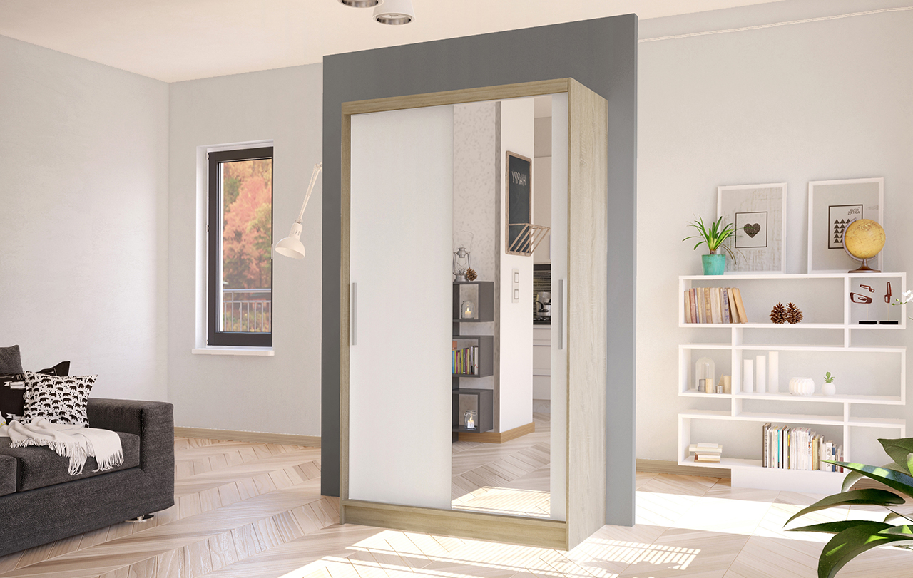 Korpus i dveře jsou vyrobeny z odolné 16 mm laminované desky s ABS hranami, které zajišťují dlouhou životnost. Posuvné dveře se hladce pohybují po hliníkových vodicích lištách. Skříň je dostupná v několika atraktivních barevných provedeních, takže ji snadno sladíte s ostatním nábytkem.