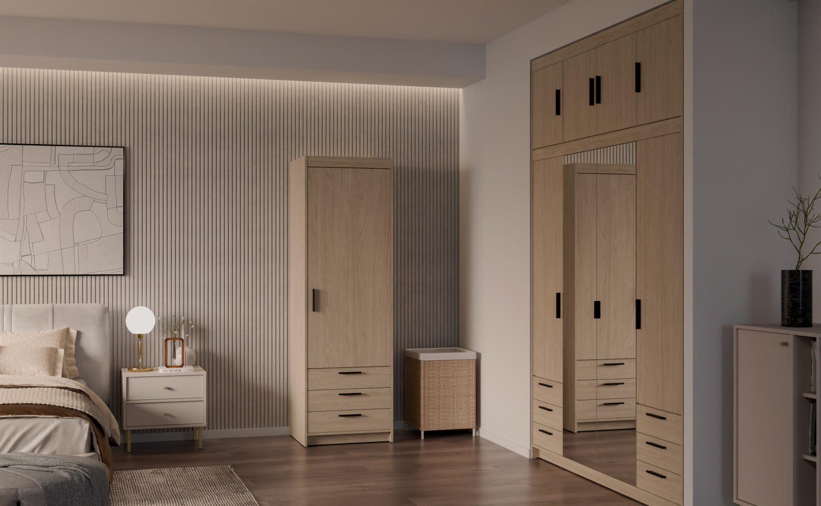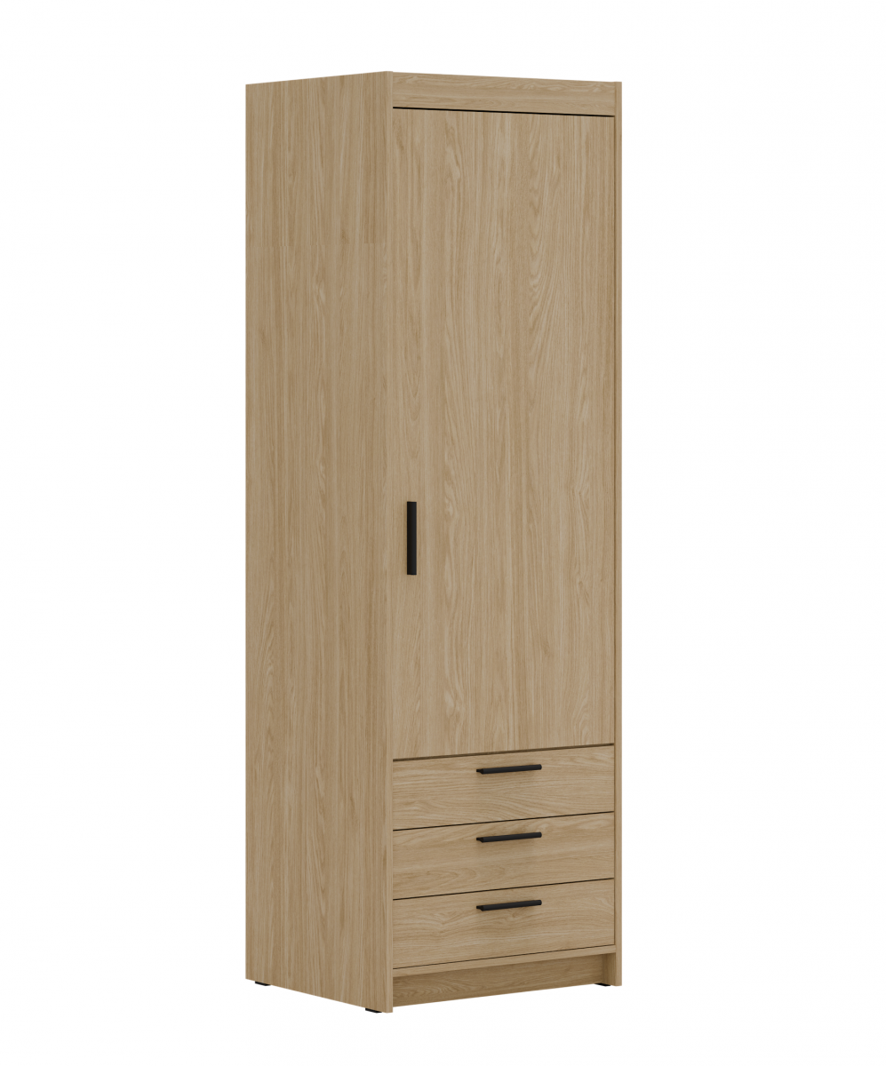 Šatní skříň Enja je vyrobena z kvalitního lamina tl.15 mm, které je odolné a snadné na údržbu. Vnitřní uspořádání skříně je praktické a poskytuje dostatek úložného prostoru. Své uplatnění najde v ložnici, předsíni i v dětském pokoji. Ke skříni lze dokoupit nádstavec. Skříň je dodávaná v demontu a nabízíme ji ve několika barevných provedeních. Součástí balení je montážní plánek včetně všech potřebných spojovacích materiálů.
