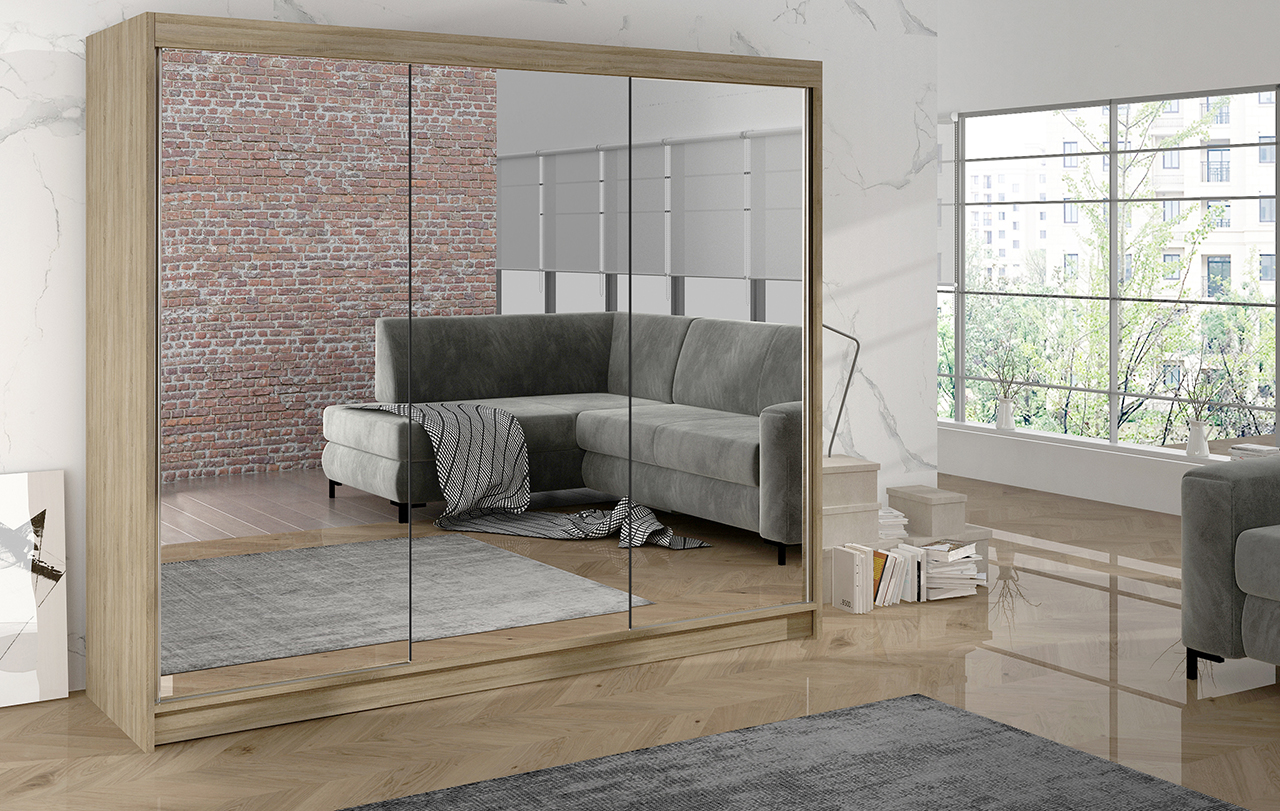Korpus i dveře jsou vyrobeny z odolné 16 mm laminované desky s ABS hranami, které zajišťují dlouhou životnost. Posuvné dveře se hladce pohybují po hliníkových vodicích lištách. Skříň je dostupná v několika atraktivních barevných provedeních, takže ji snadno sladíte s ostatním nábytkem.