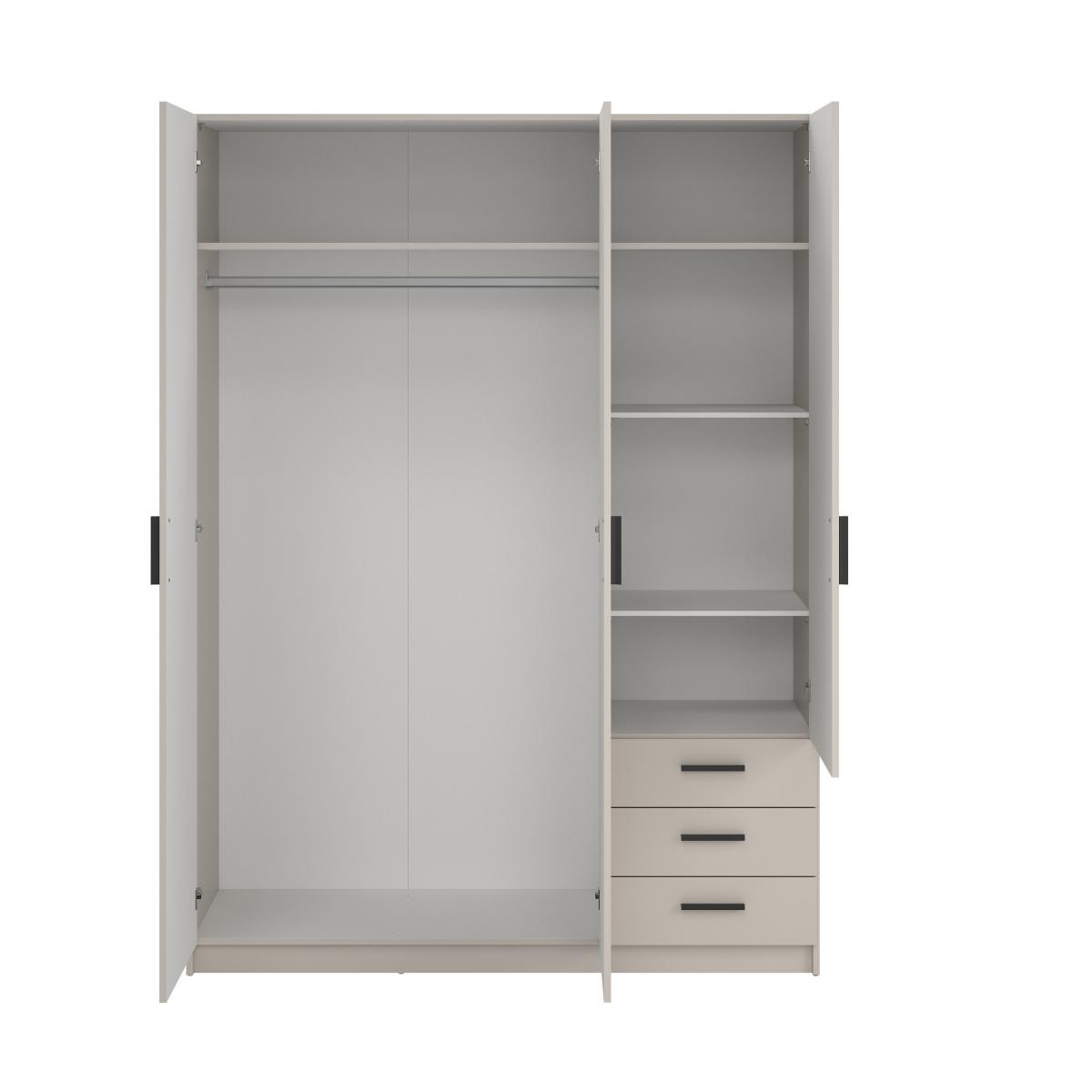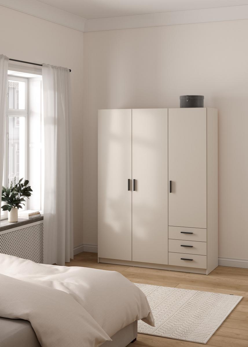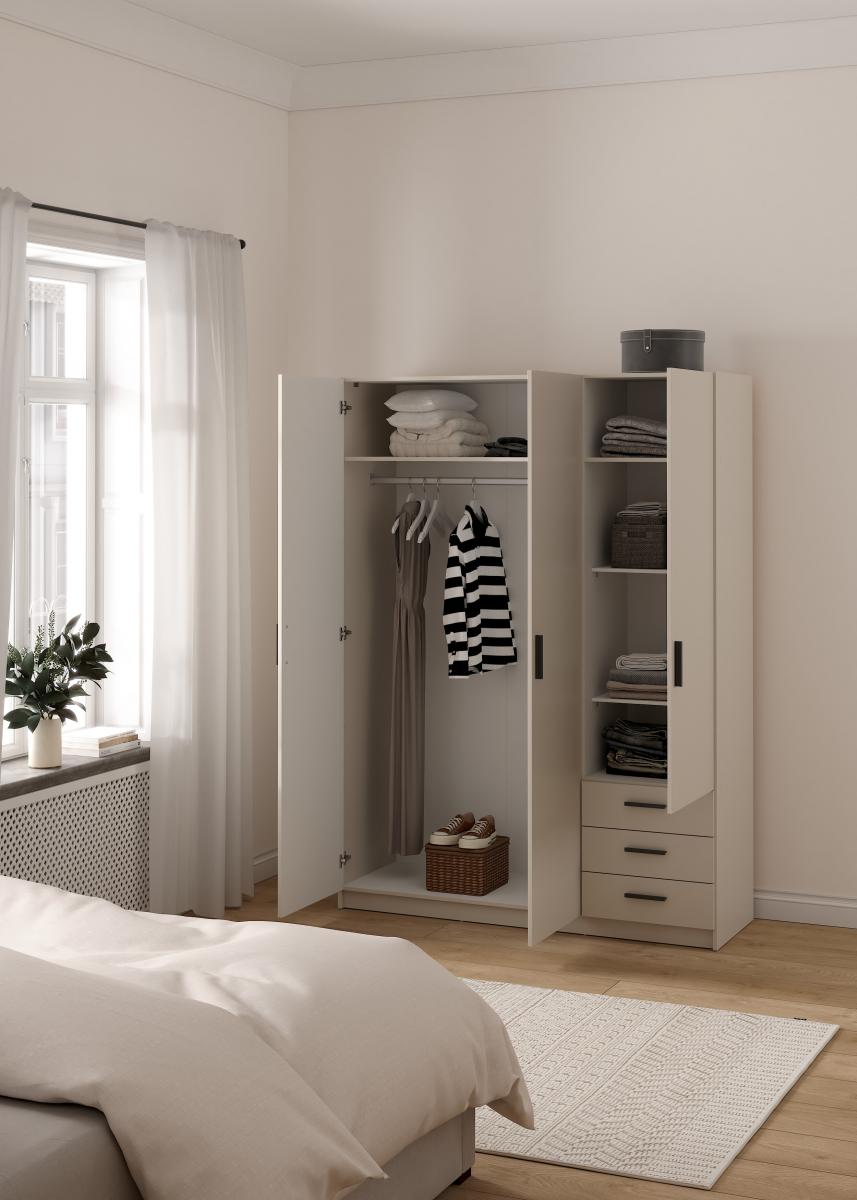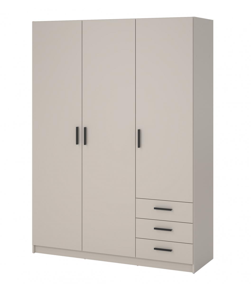 šířka 147 cm, 3 dvěře + 3 zásuvky, šatní tyč, nastavitelné police, více variant