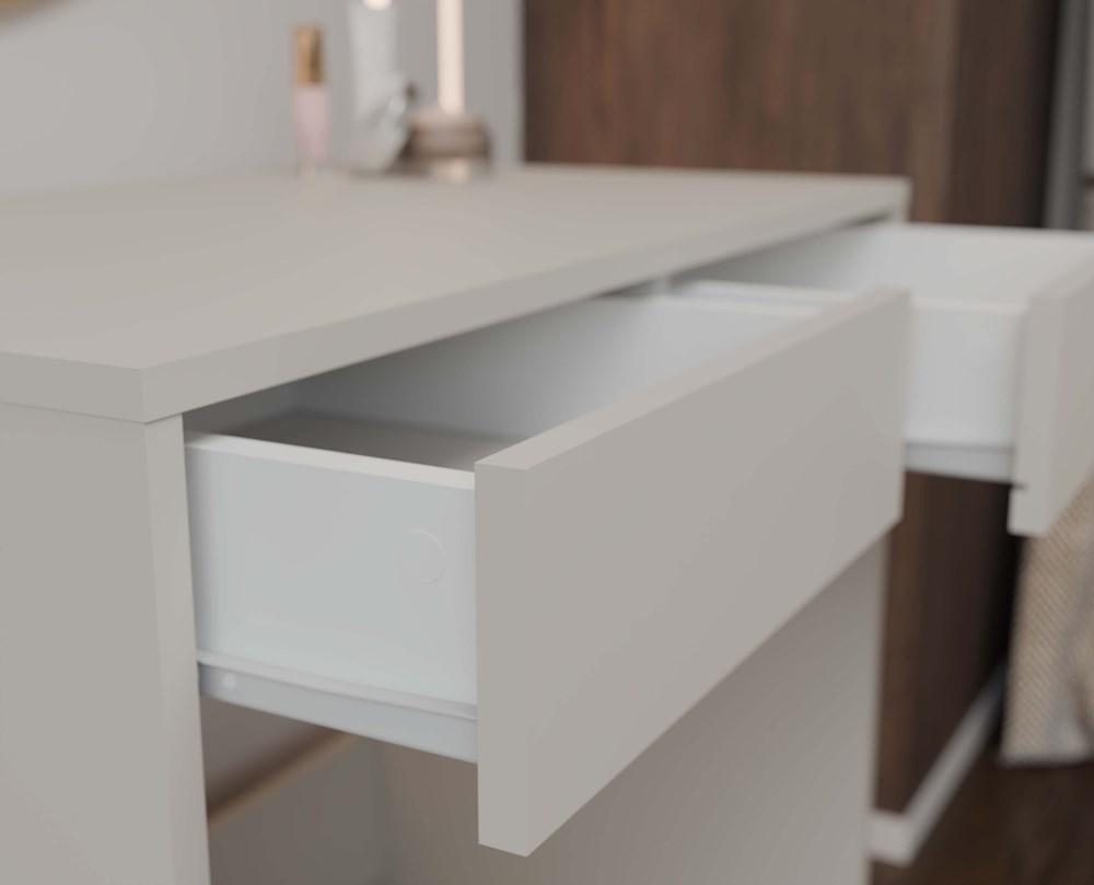 Nadčasový toaletní stolek Marissa je jedinečný kousek - dokonalé řešení pro ty, kteří hledají spojení funkčnosti a estetiky v každém detailu. Díky svým kompaktním rozměrům je ideální volbou i pro menší místnosti, skvěle se hodí do ložnice, pracovny nebo studentského pokoje. Elegantní bezúchytková čela zásuvek zajistí pohodlné používání a dodají moderní vzhled. Nábytek je vyroben z kvalitního lamina, které je snadno udržovatelné a odolné proti oděru.